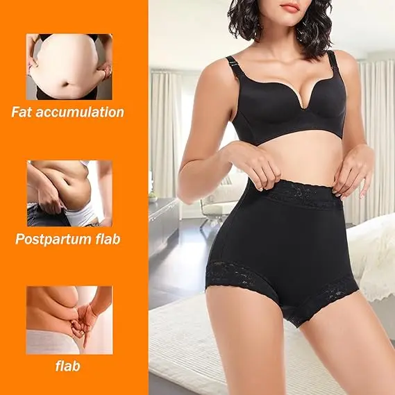 ·NON-SLIP: Mid-rise waist Body shaper shorts with lace design on the waist and hemline to enhance your charm. The lace has a drip rubber anti-slip design, making the underwear cling to your body like your second skin.The 4 steel bones at the waist support and compress the waist to minimize those unsightly bumps and bulges.
