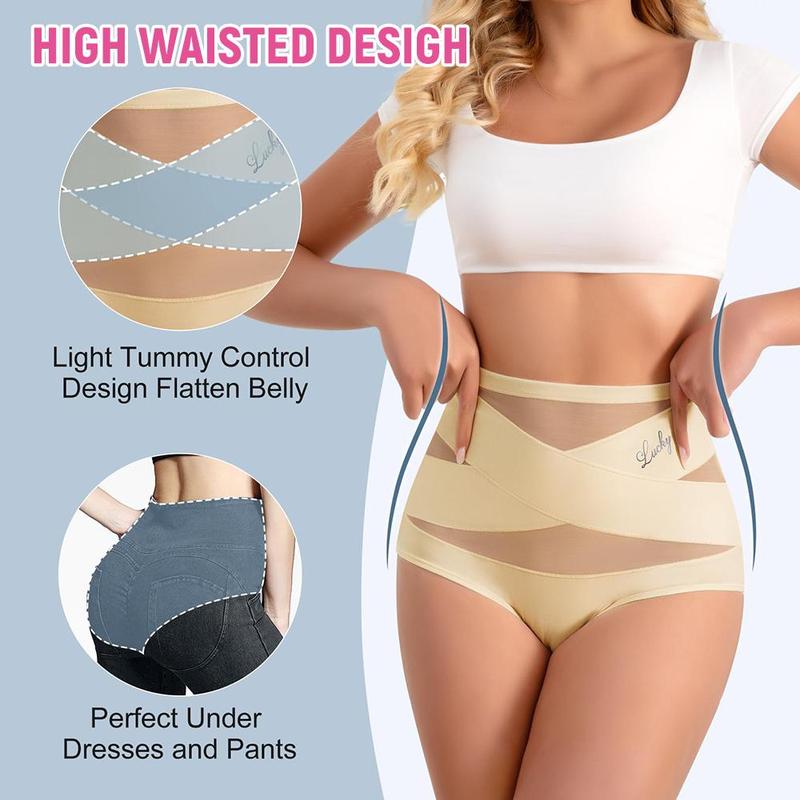 5. 4pcs/set Women High-Waist Slight Shaping Panties Seamless Silk Mesh Control Briefs Slight Shaping Tummy Slimming & Butt Lifting Underwear Breathable Everyday - Womenswear