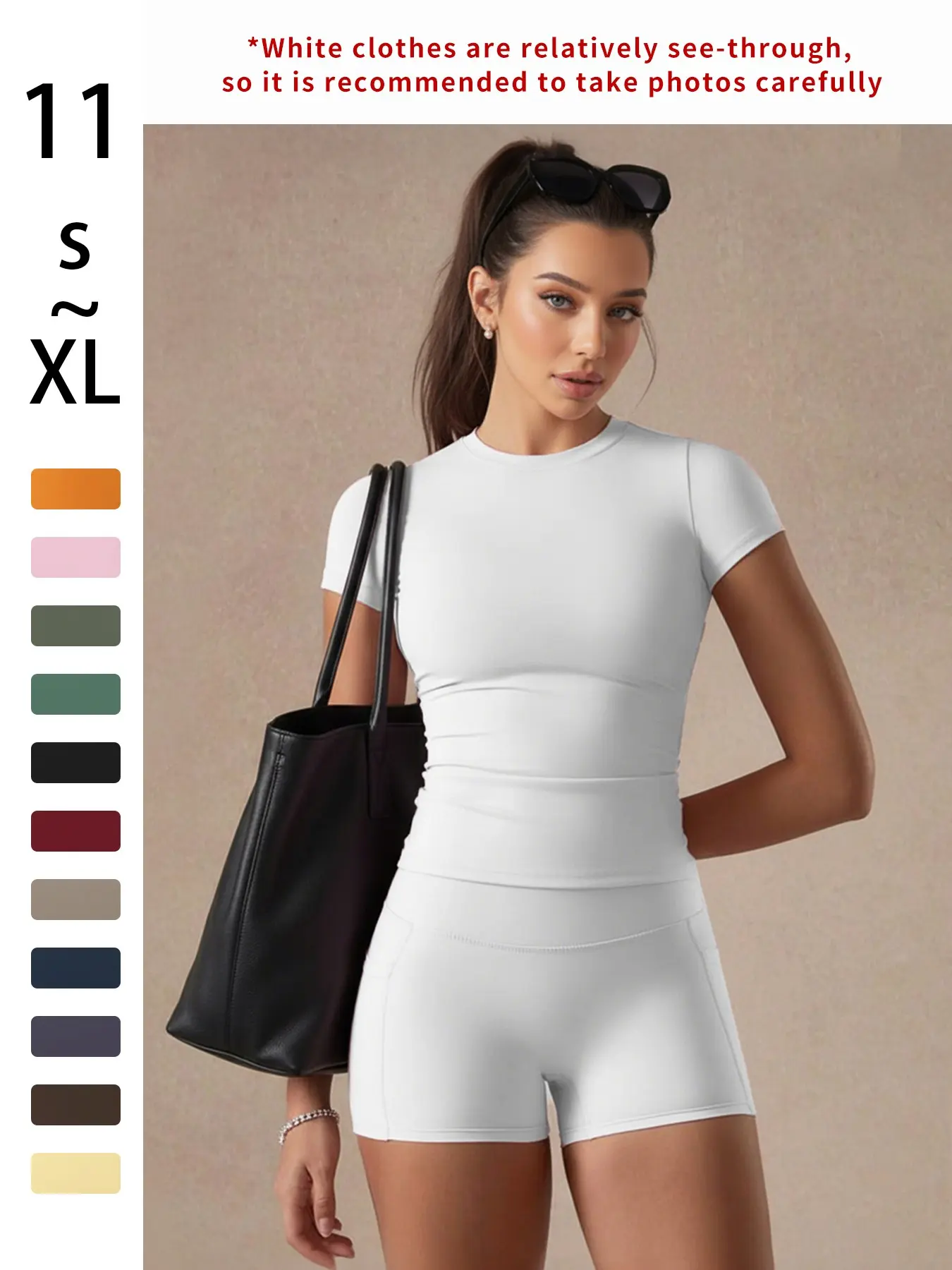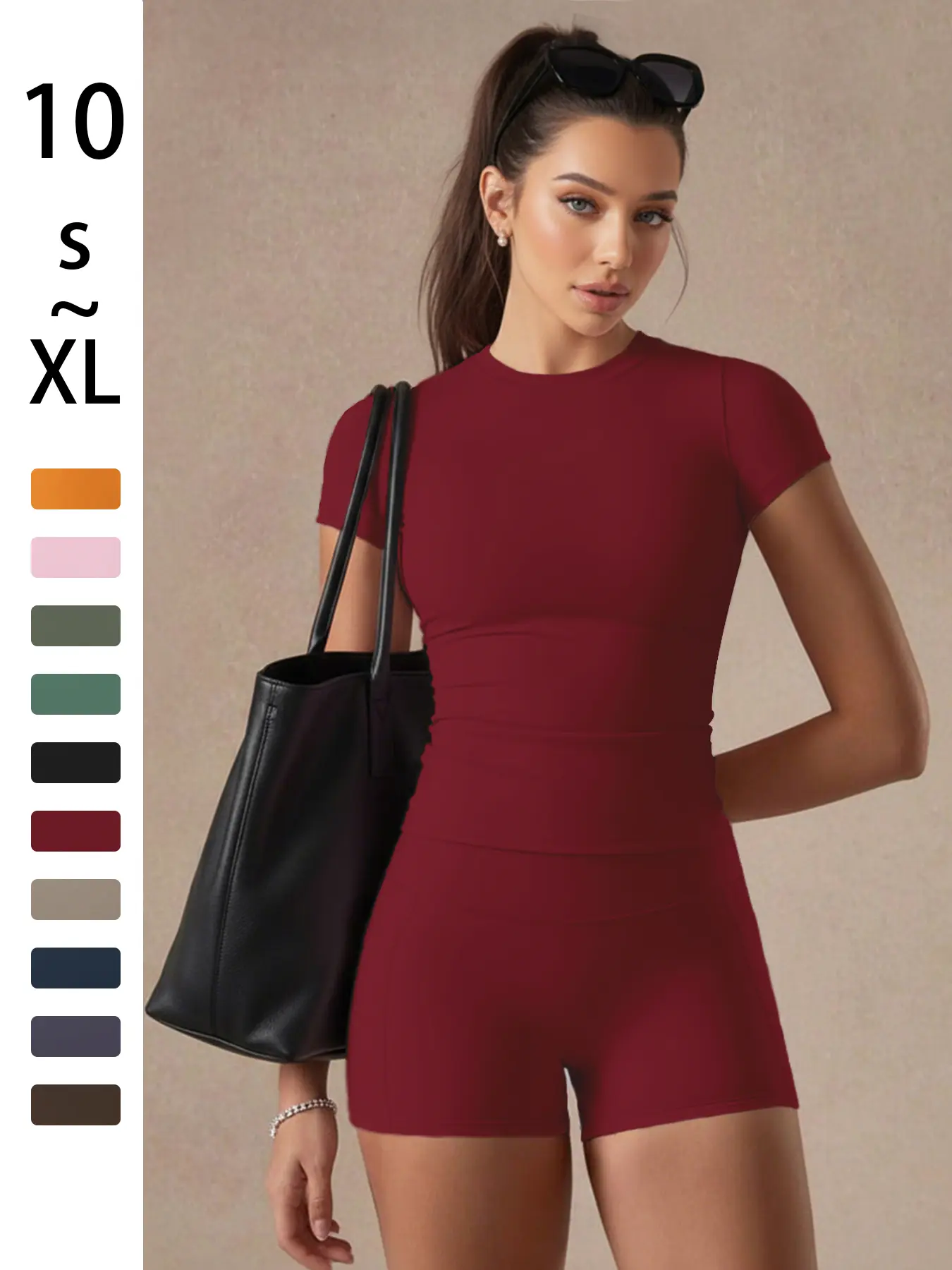 Women's Solid Color Set, Basic Versatile T-Shirt Top, Fashion Multi-Purpose Slimming Hip-Lifting Gym Shorts, Yoga Fitness Gym, All Season Activewear, Athletic Style Activewear