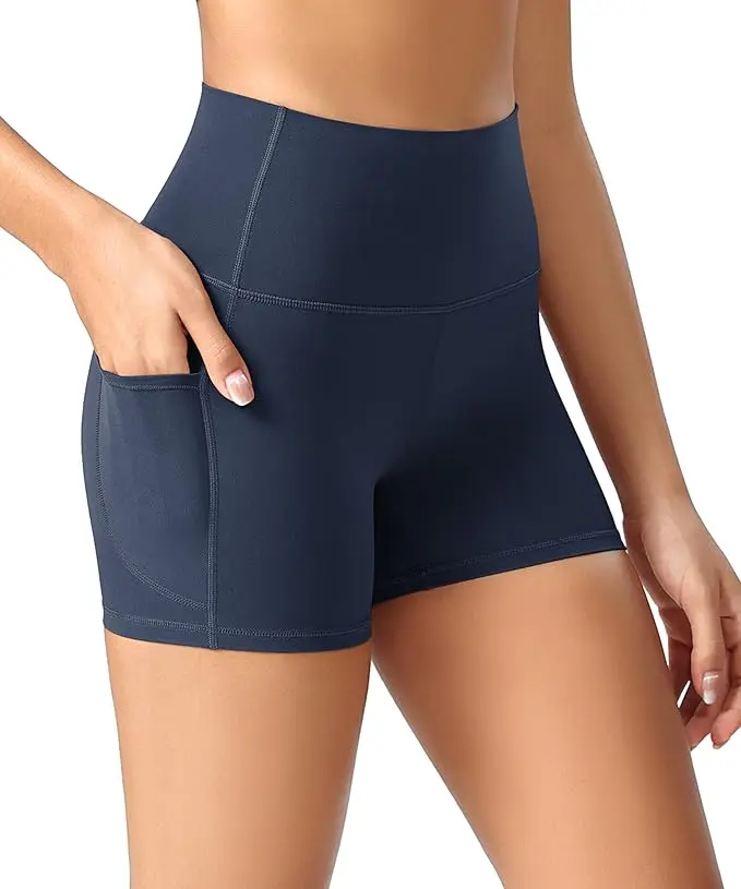 [Keep Perfect Shape] - High-waisted style with tummy control design. Wide waistband contours body curves and streamlines shape help to promote yoga shorts both compression and support.