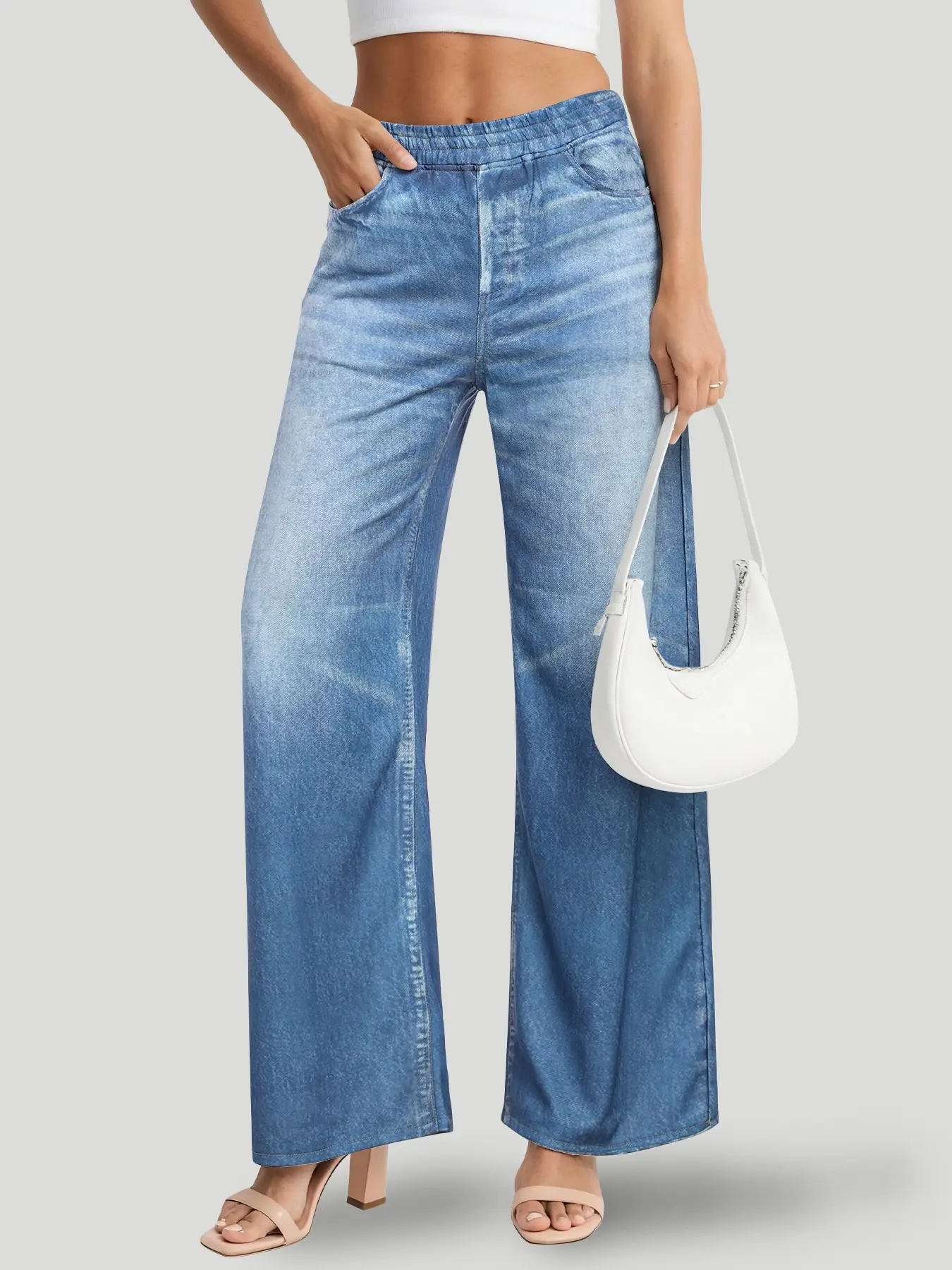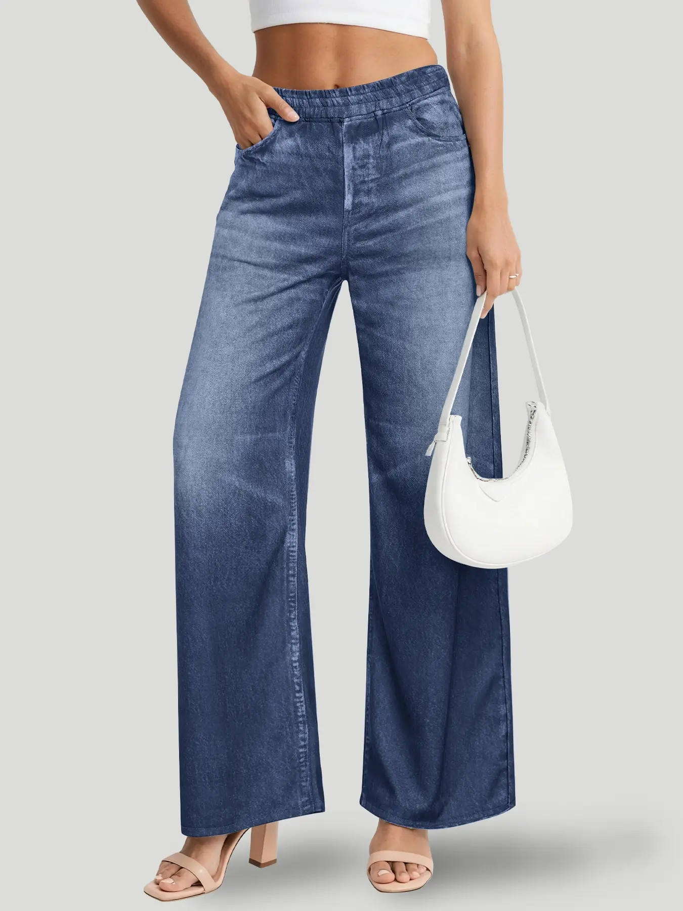 Women's High Waist Stretchy Wide Leg Jeans, Loose Fit Denim with Pockets, Casual All-Season Wear, Perfect for Everyday Style #foldoverjeans #plussizedenim #highwaistpantsforwomen #widelegtrousers #pacsunbaggyjeans #goodamericanjeansreview #uniquejeans #plussizesweatpants #wideleggedpants #denimrompers