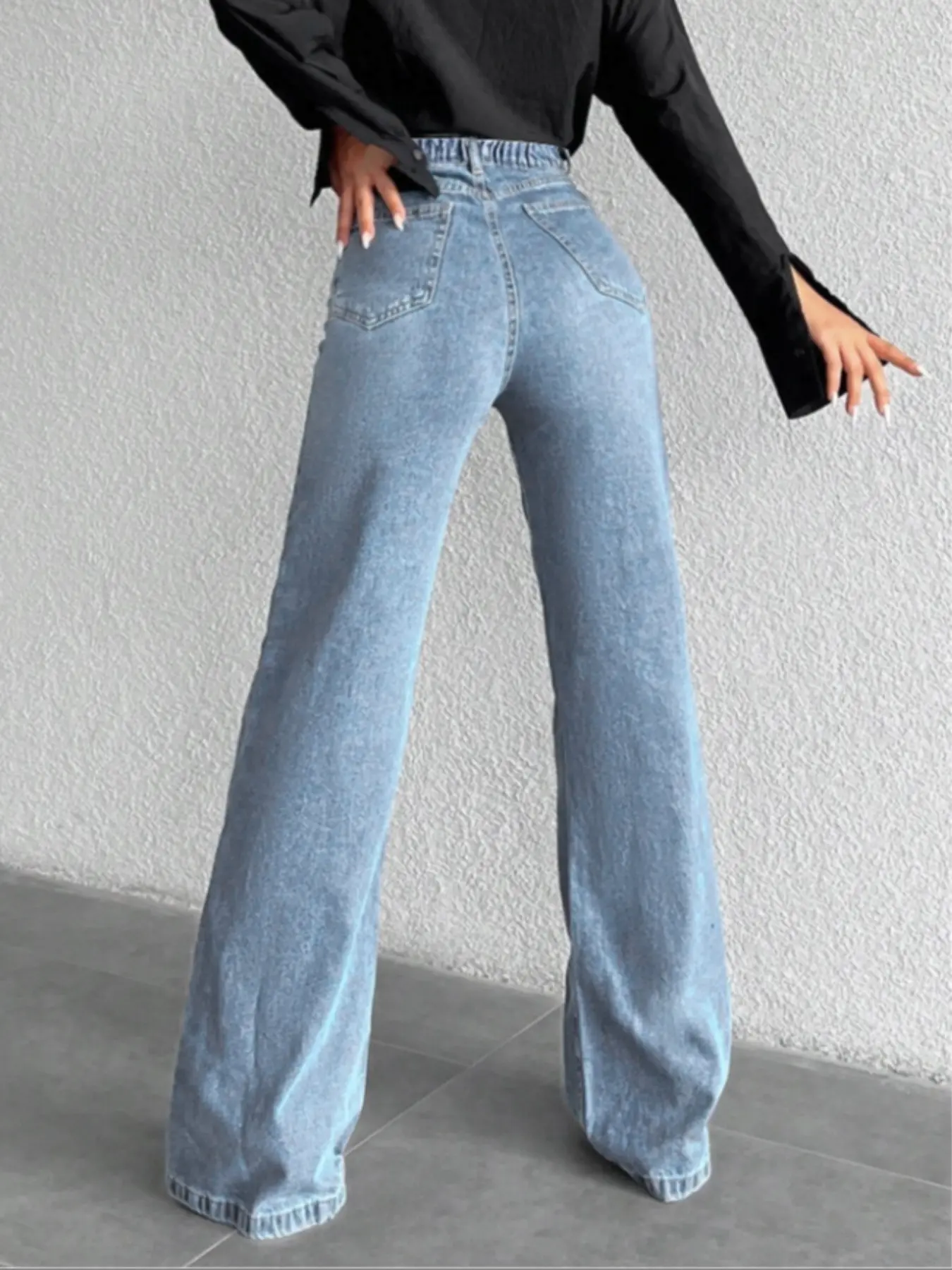 【High Waist Fit】: These jeans feature a high waist design, providing a flattering fit and added support.