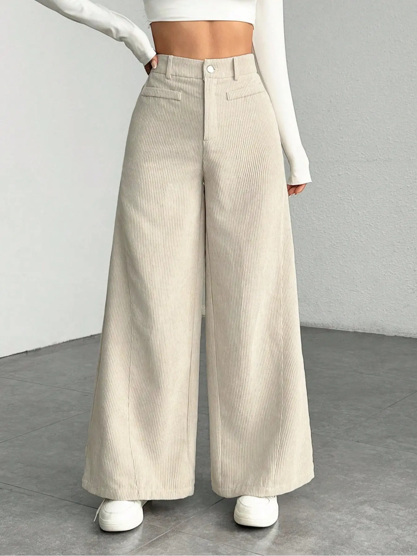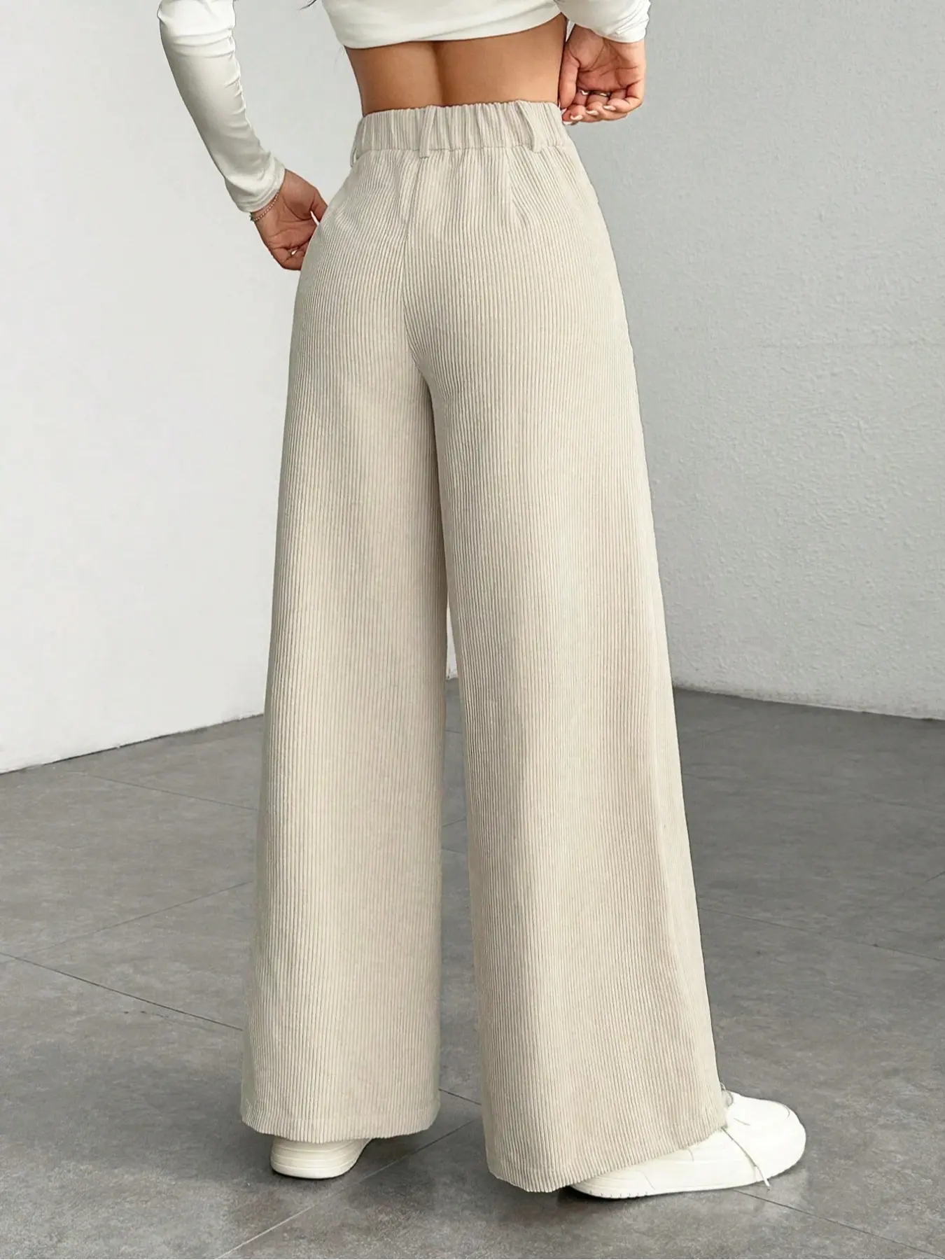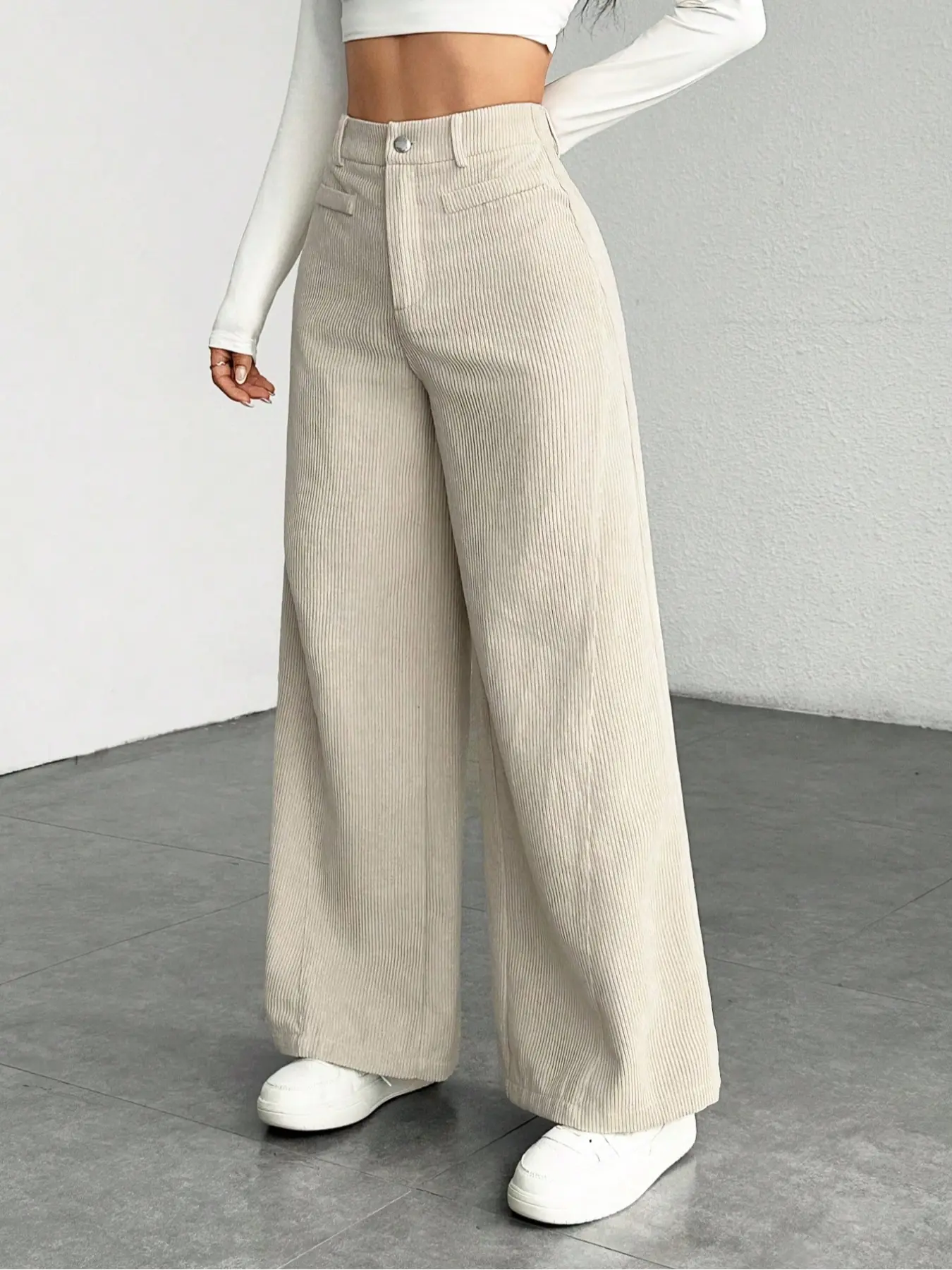 Women's High Waist Wide Leg Corduroy Pants, Casual Straight Fit Long Trousers, Comfortable All-season Solid Color Design, Womenswear