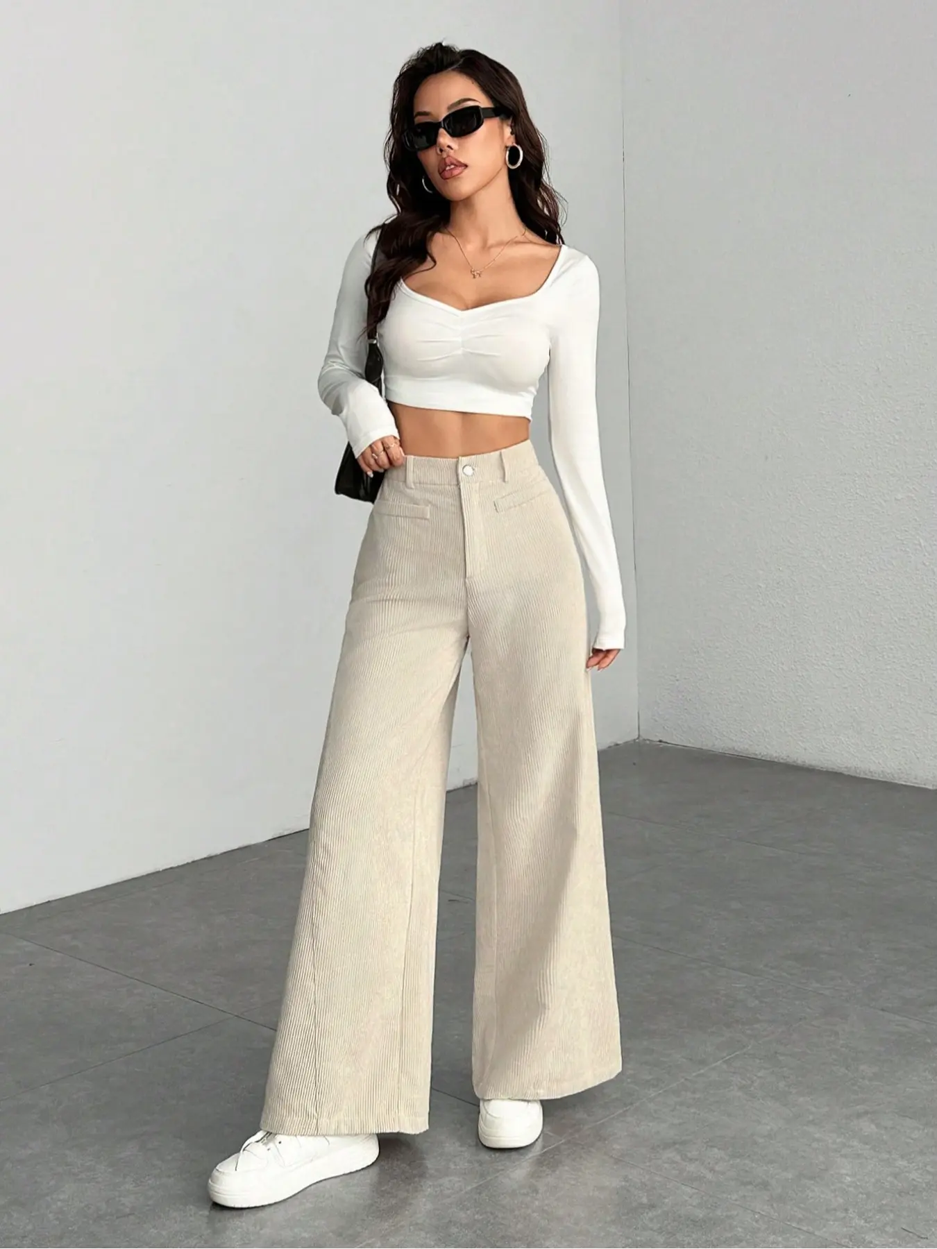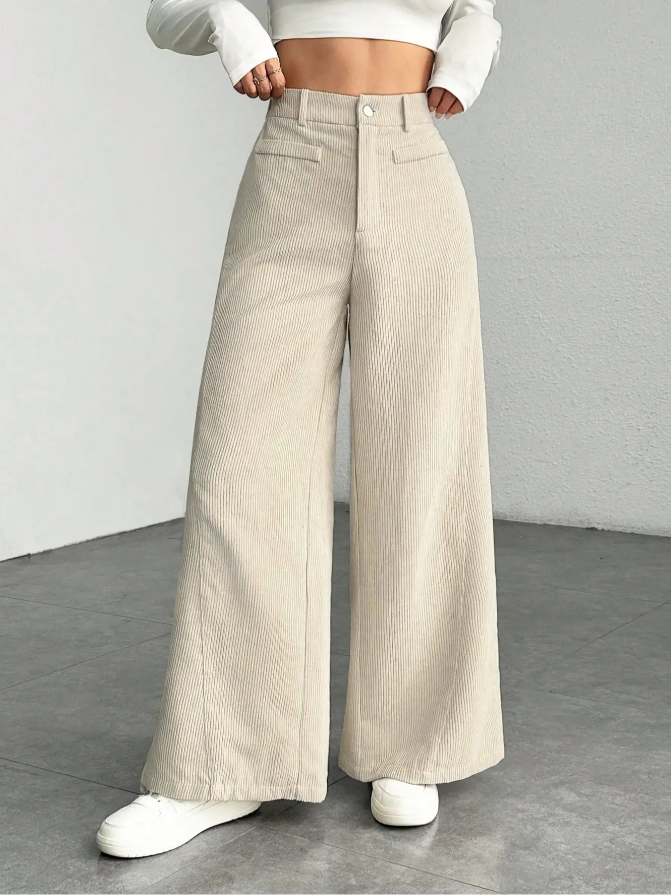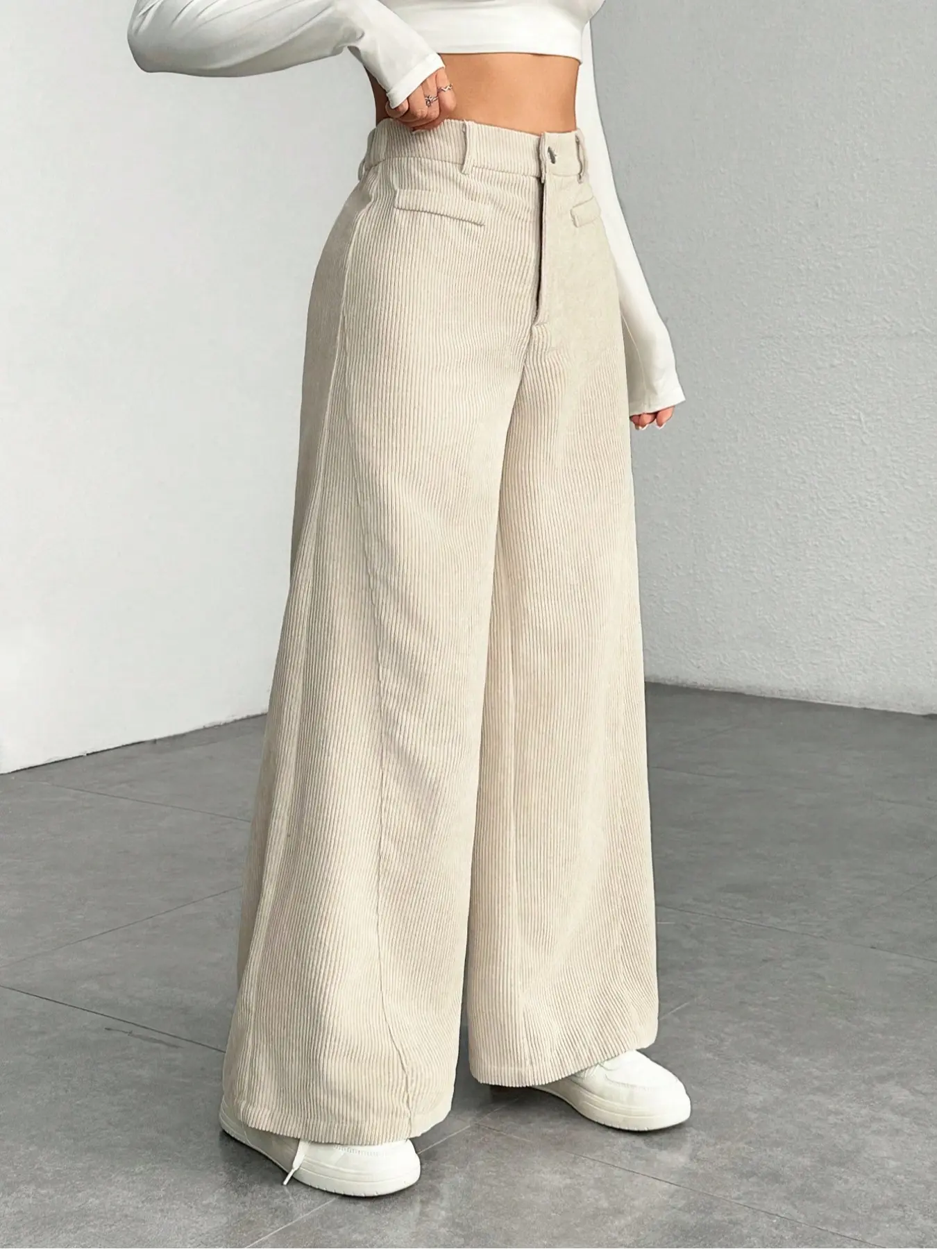 Women's High Waist Wide Leg Corduroy Pants, Casual Straight Fit Long Trousers, Comfortable All-season Solid Color Design, Womenswear