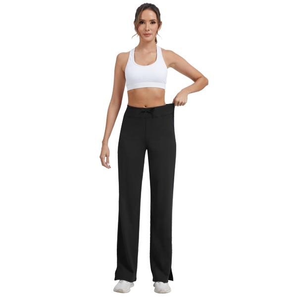Women's High Waisted Athletic Wide Leg Pants Soft Stretch Yoga Lounge Workout Trousers with Two Back Pockets