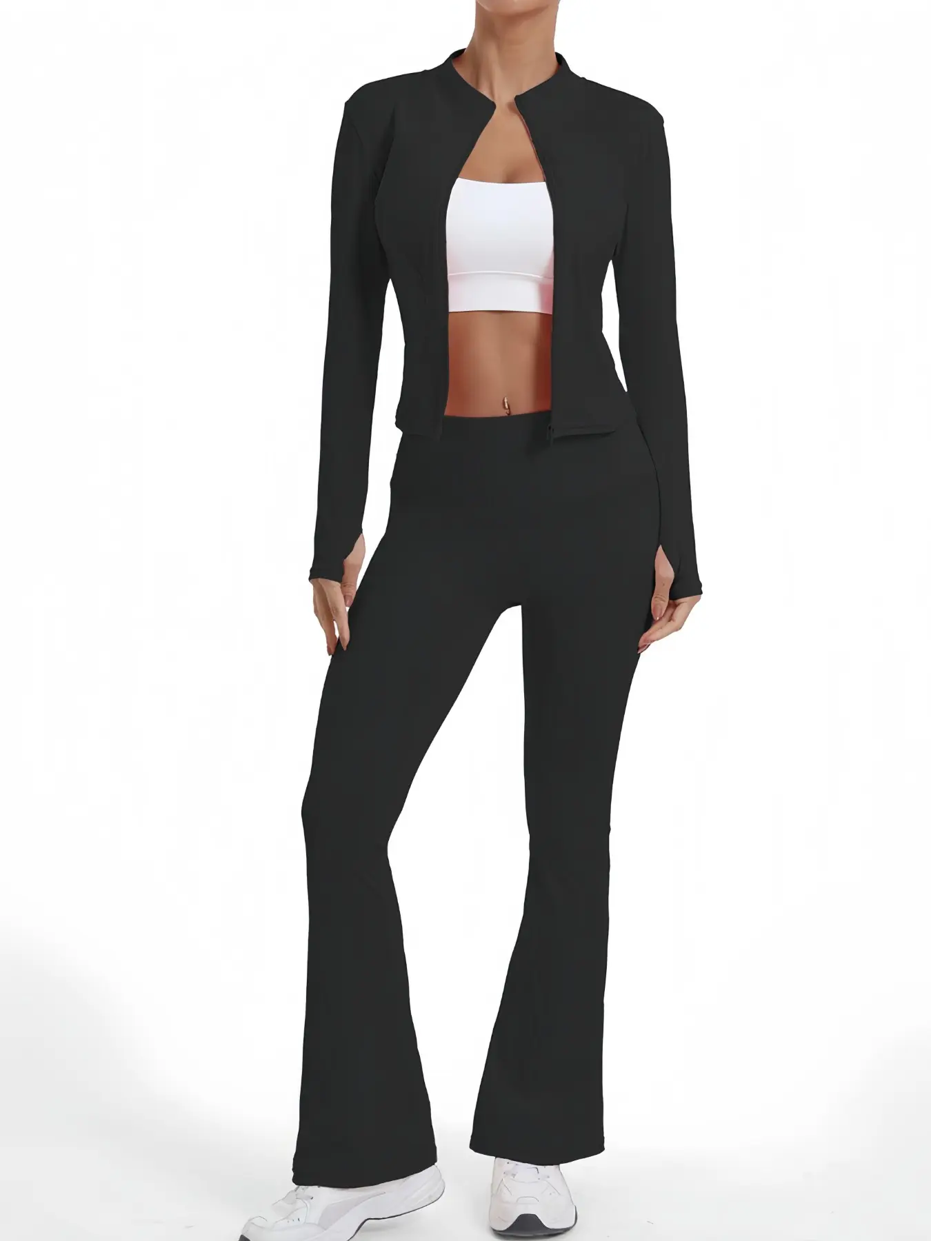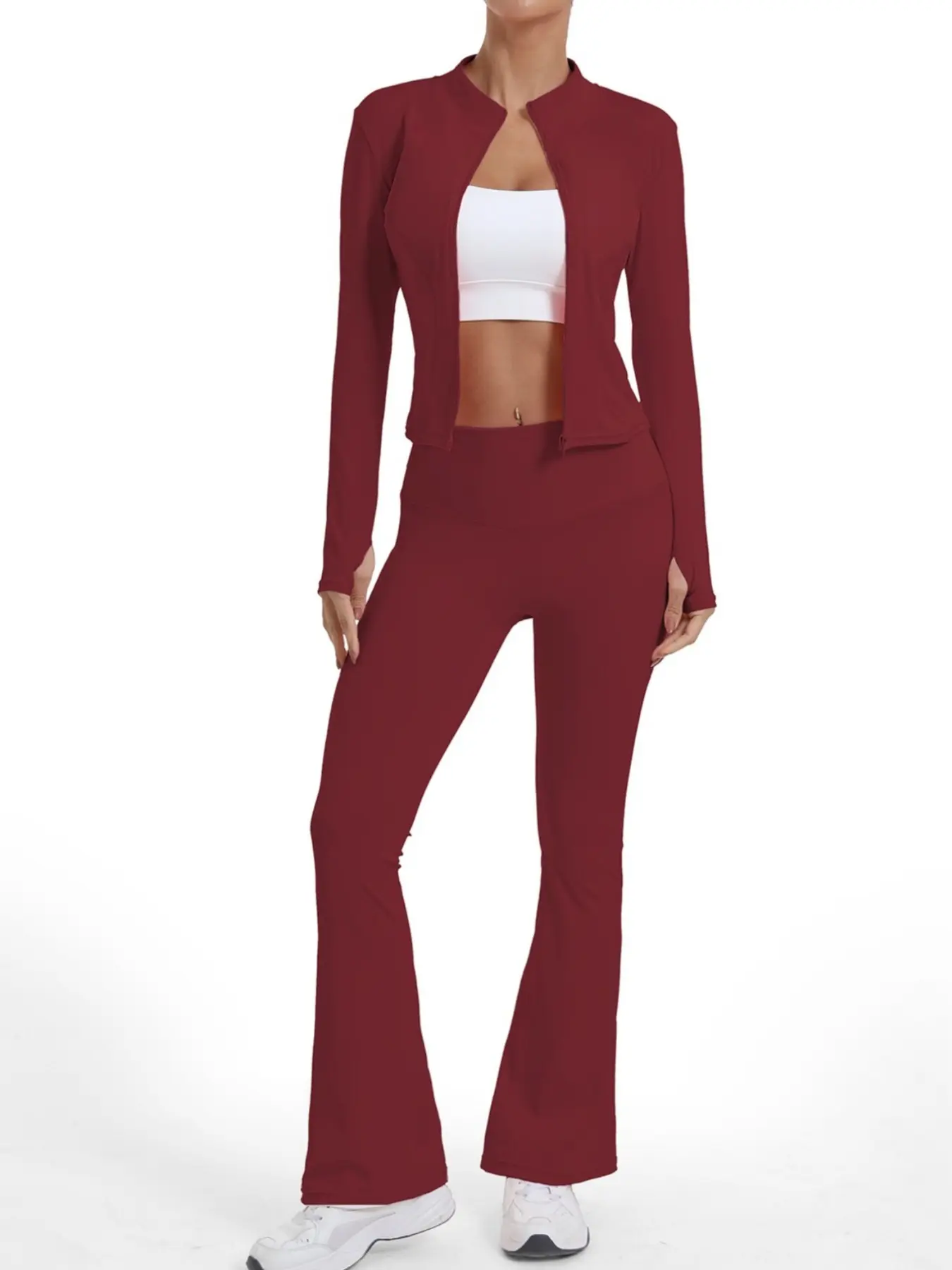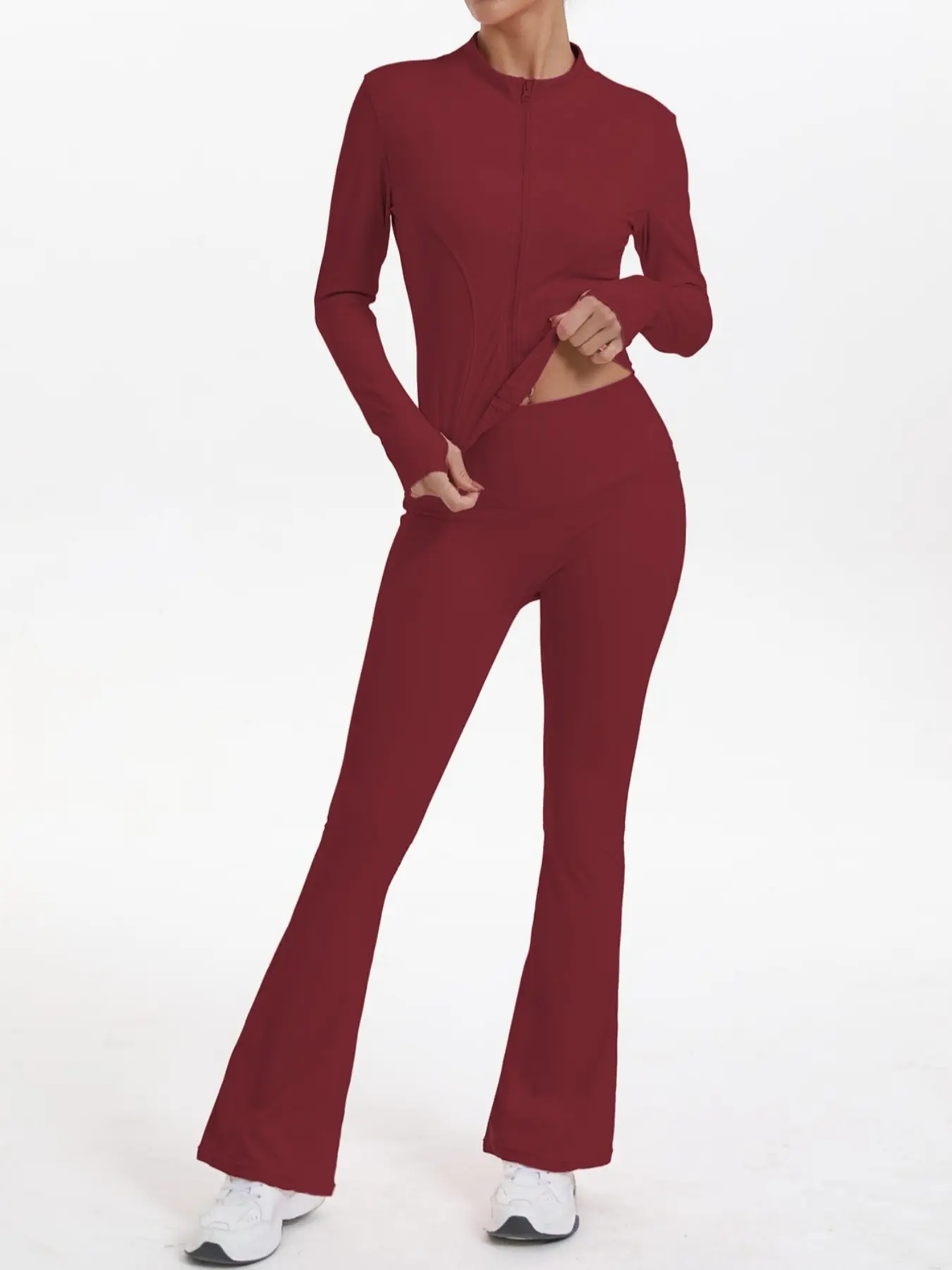 Women's High Waist Yoga Set, Stand Collar Full Zip Jacket & Wide Leg Pants, Soft Comfortable Gym Training Running Cycling Hiking Golf Tennis Yoga Bottoms