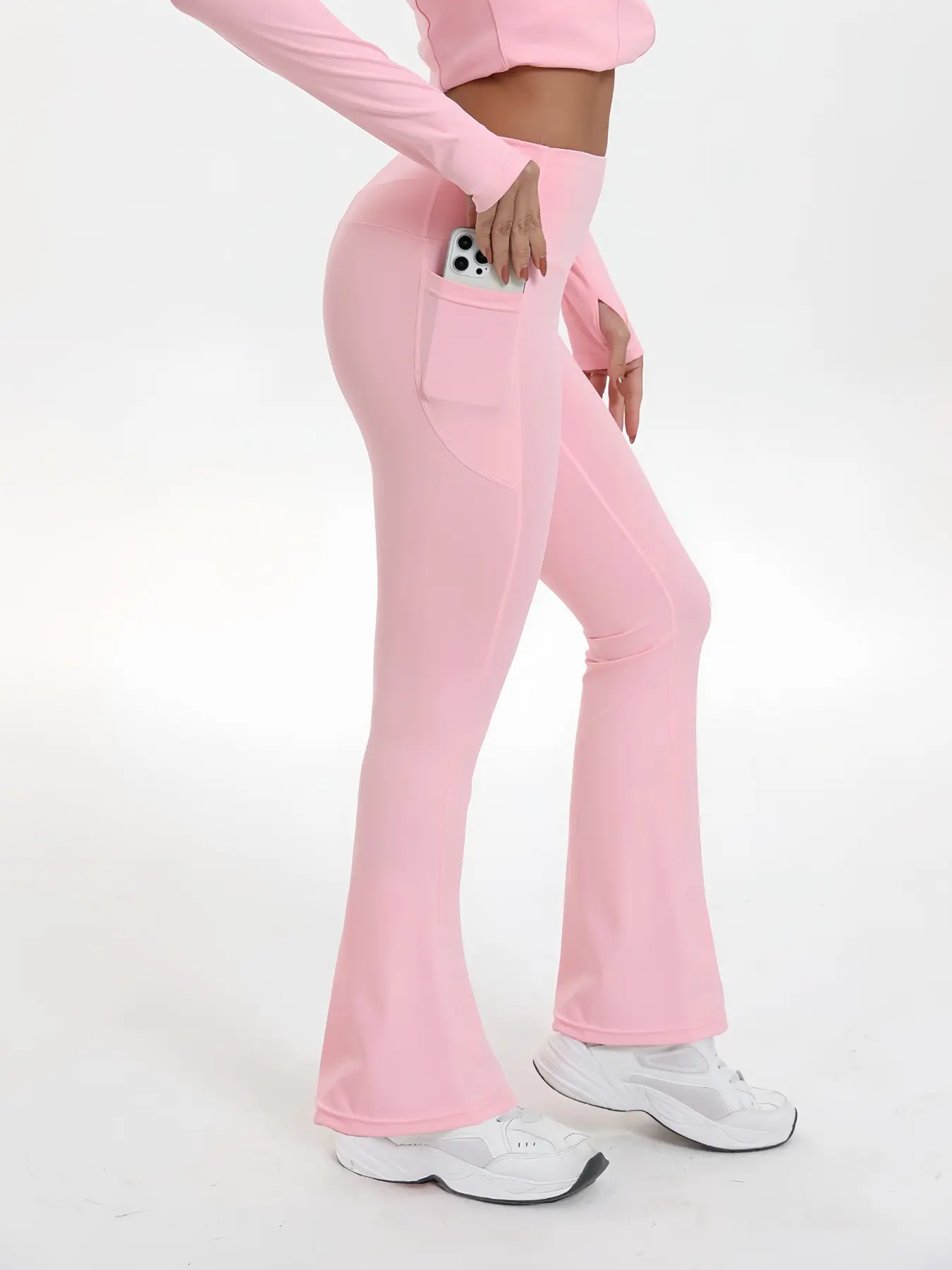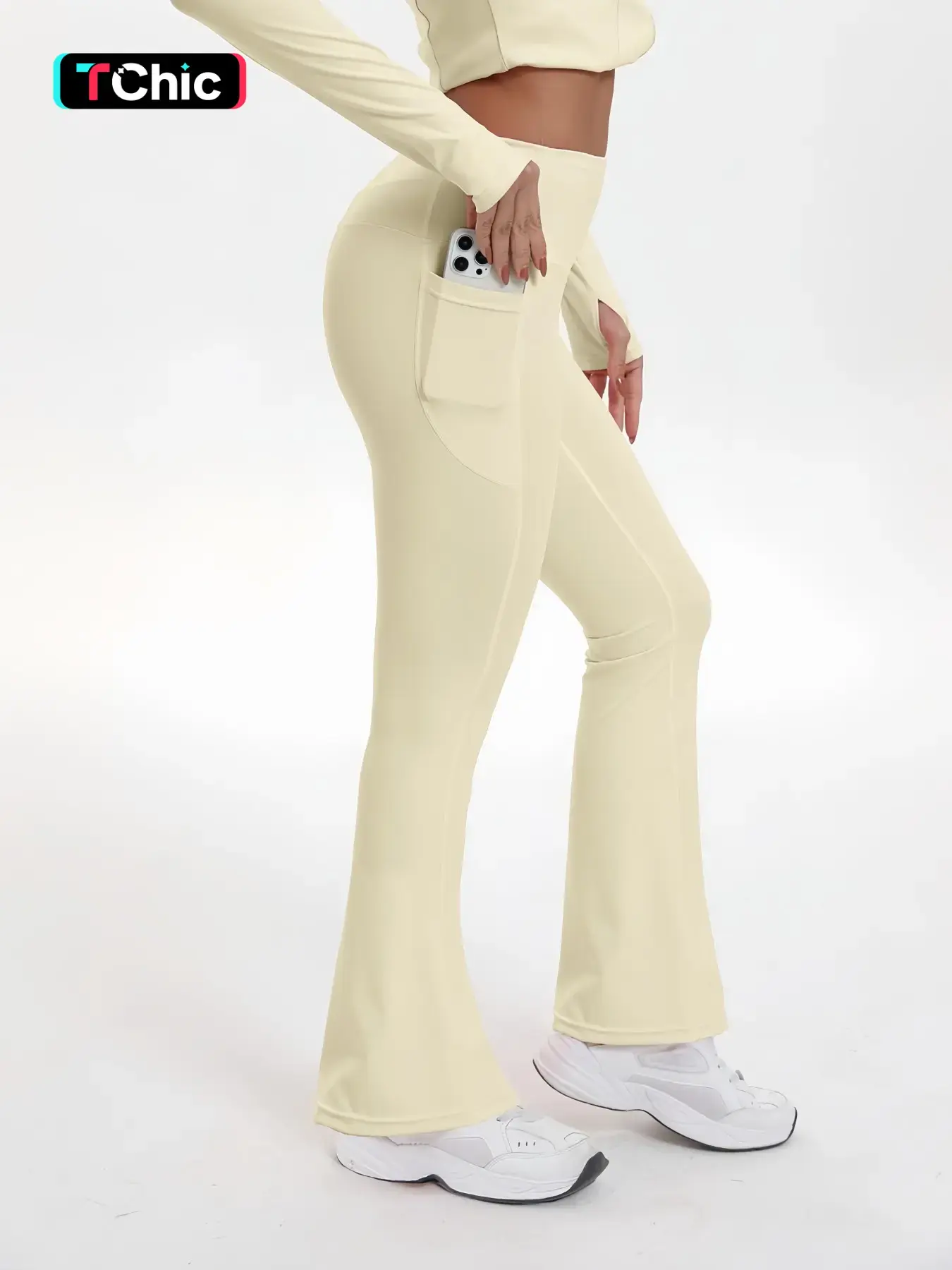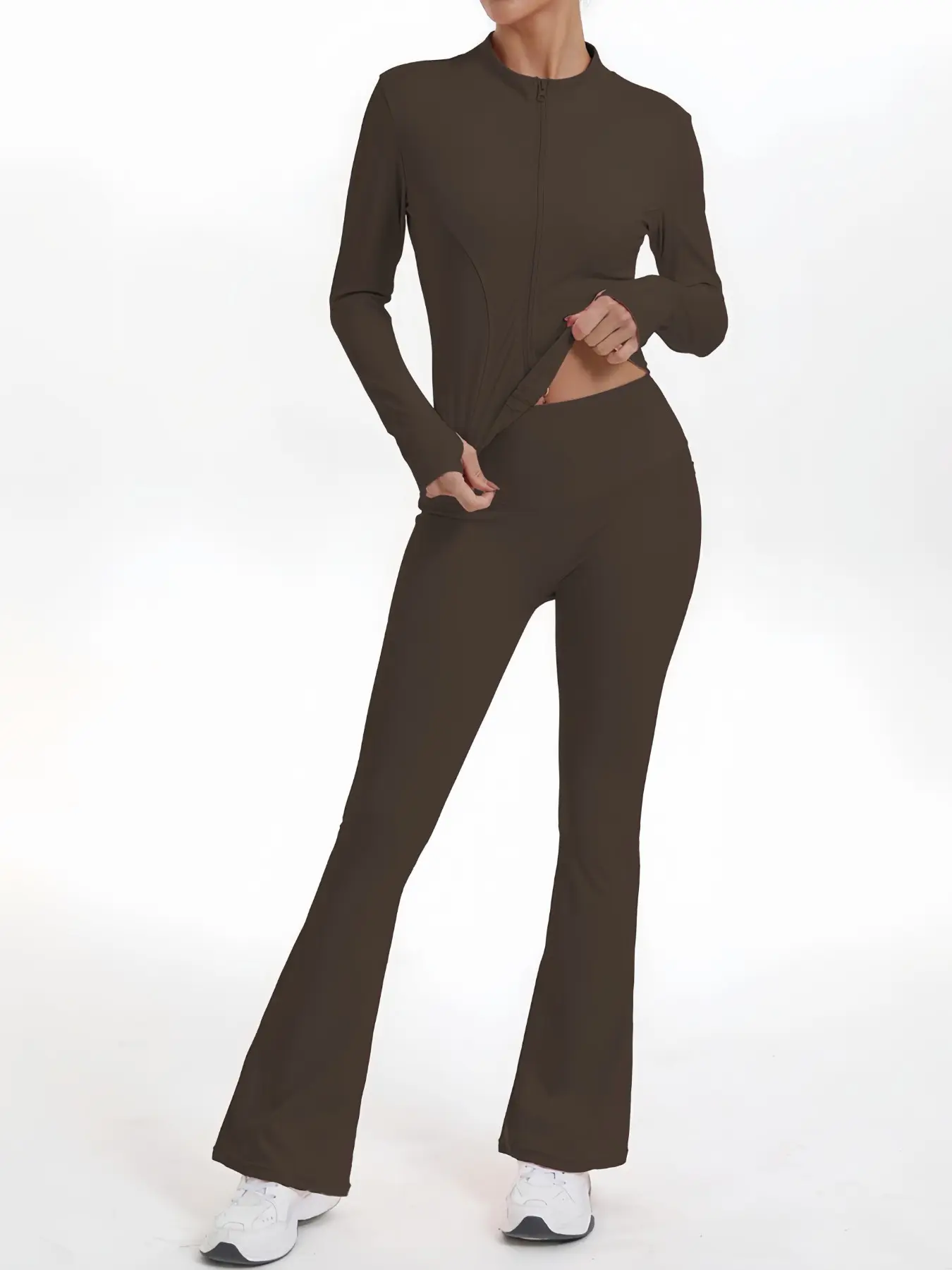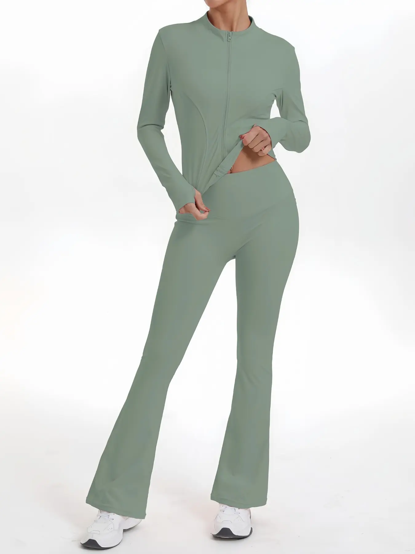 Women's High Waist Yoga Set, Stand Collar Full Zip Jacket & Wide Leg Pants, Soft Comfortable Gym Training Running Cycling Hiking Golf Tennis Yoga Bottoms