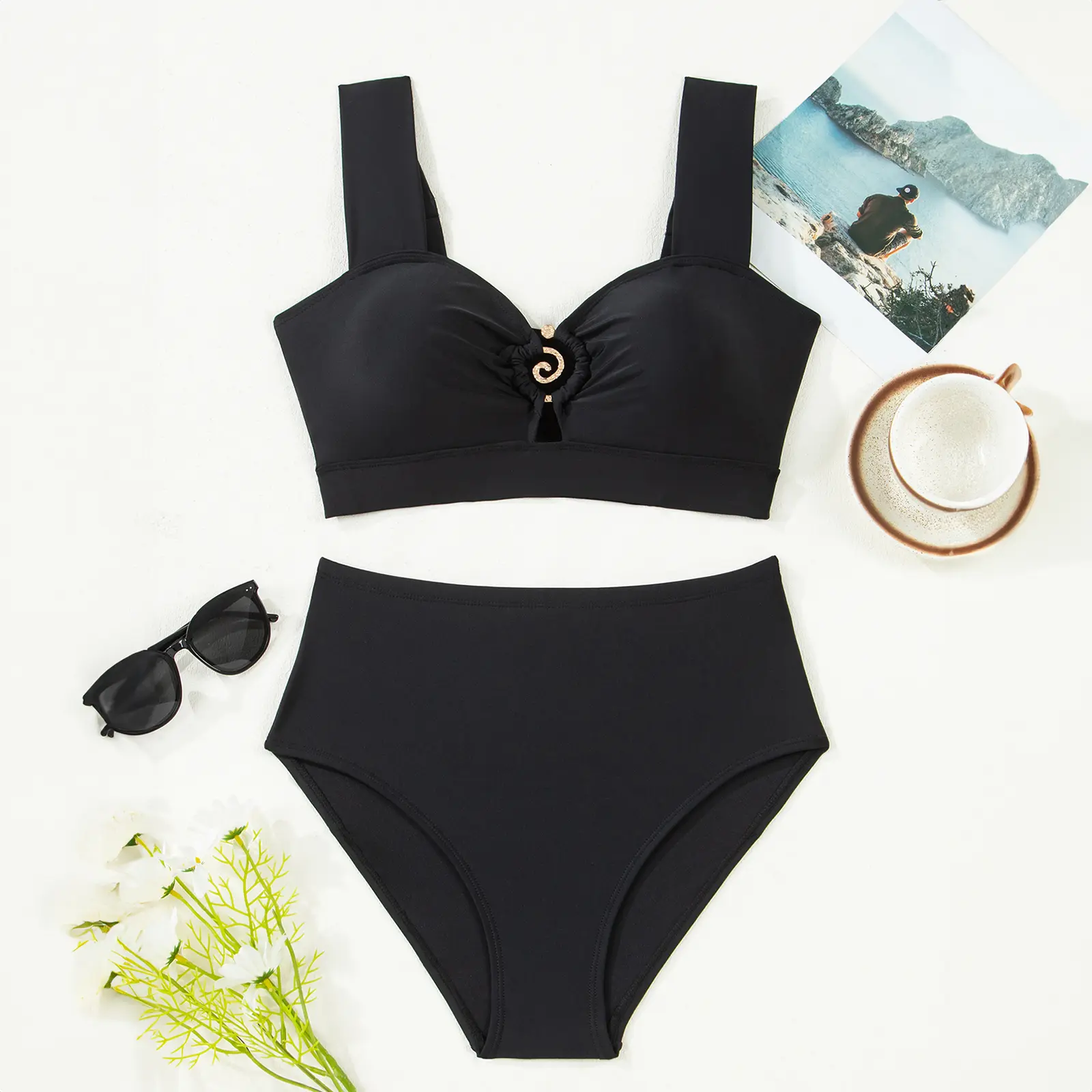 Slimming High-Waist Bottom: Offers gentle tummy control with a cheeky cut to shape your silhouette.