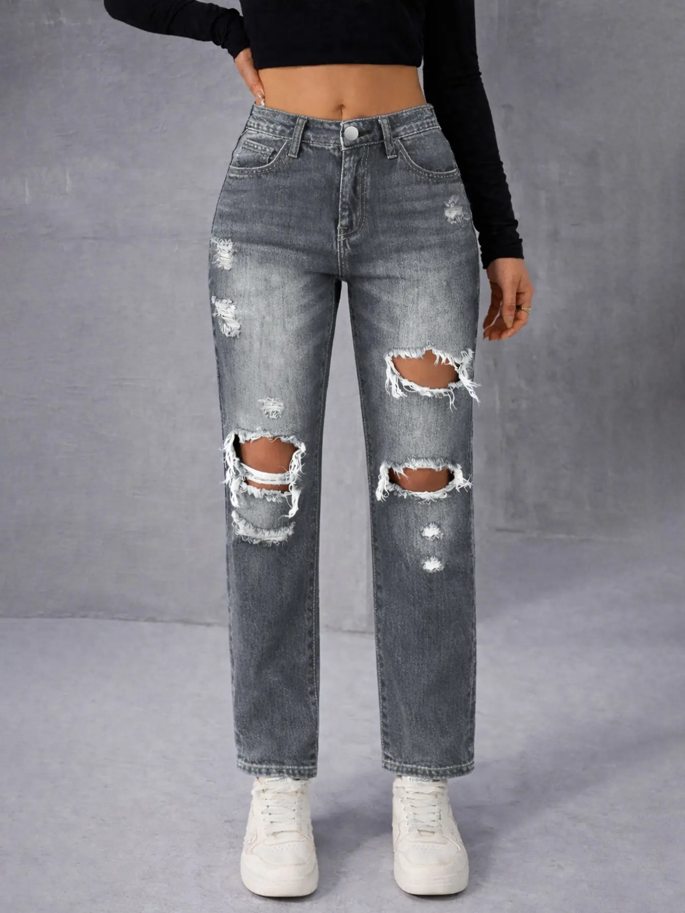【Distressed Look】: The distressed design adds a trendy street-style touch, making these jeans perfect for casual outings.