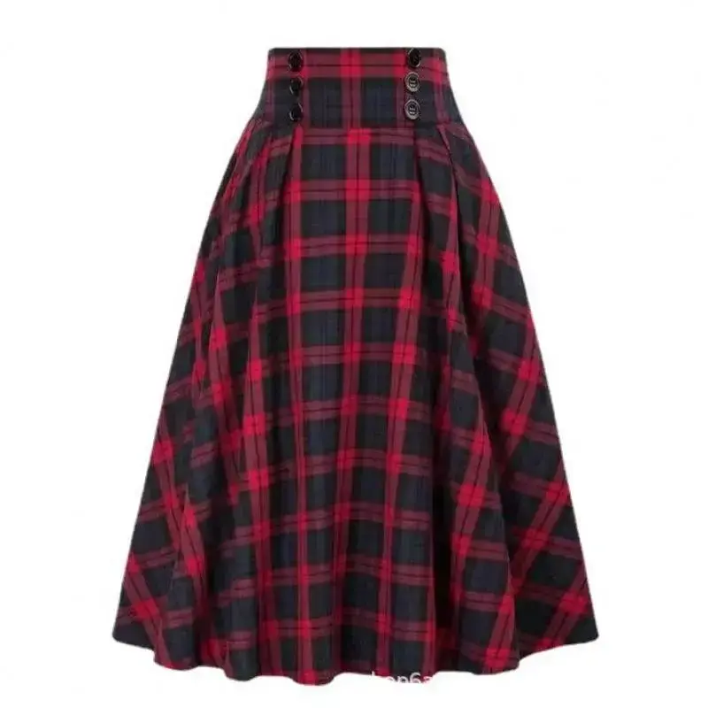 5. Cross border autumn and winter new flannel high waisted half skirt for women, retro plaid large swing A-line skirt, slim and elegant