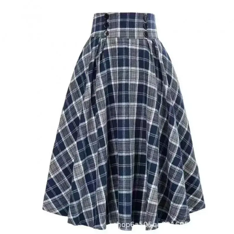 Cross border autumn and winter new flannel high waisted half skirt for women, retro plaid large swing A-line skirt, slim and elegant