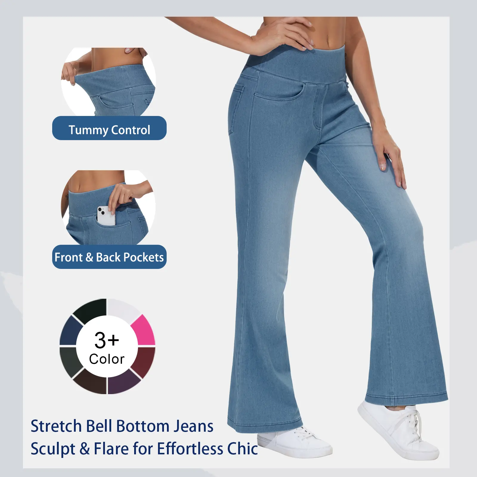 ·High Elasticity Fabric: This Bell Bottom Jeans is Made of high-quality stretch denim fabric, it fits snugly without tightness and allows for natural movement. Moisture-wicking design to keep dry and breathable.al outings and professional occasions, and will soon become a must-have item in your wardrobe.