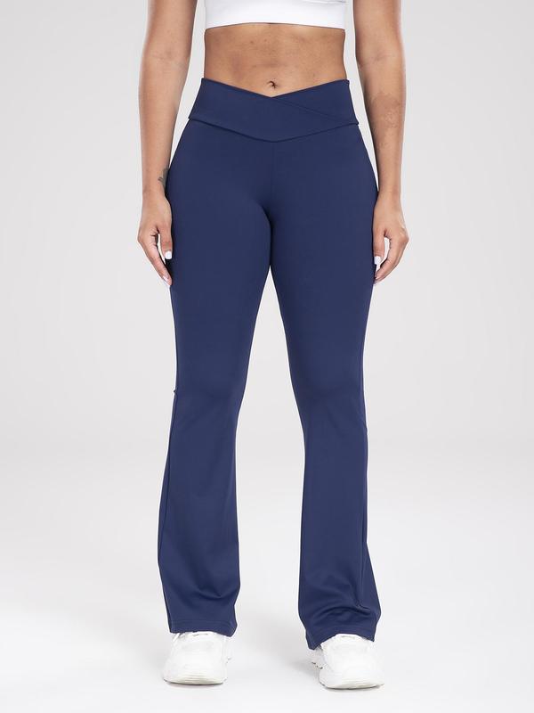 Women's Solid High Waist Flare Leg Sports Leggings, Breathable Comfortable Overlap Waist Yoga Leggings, Ladies Sportswear for Indoor Outdoor Wear, Skinny Yoga Bottoms