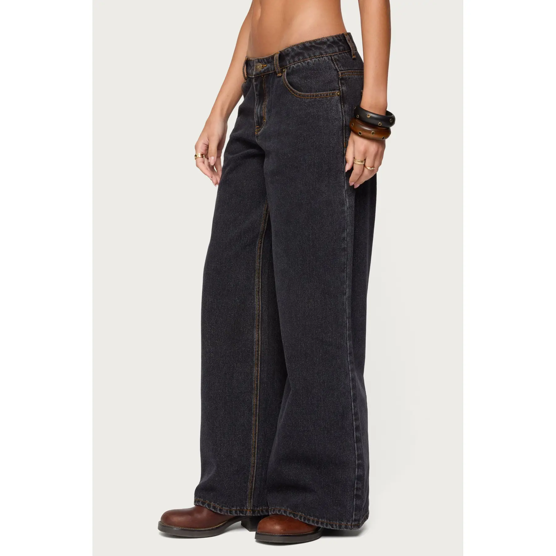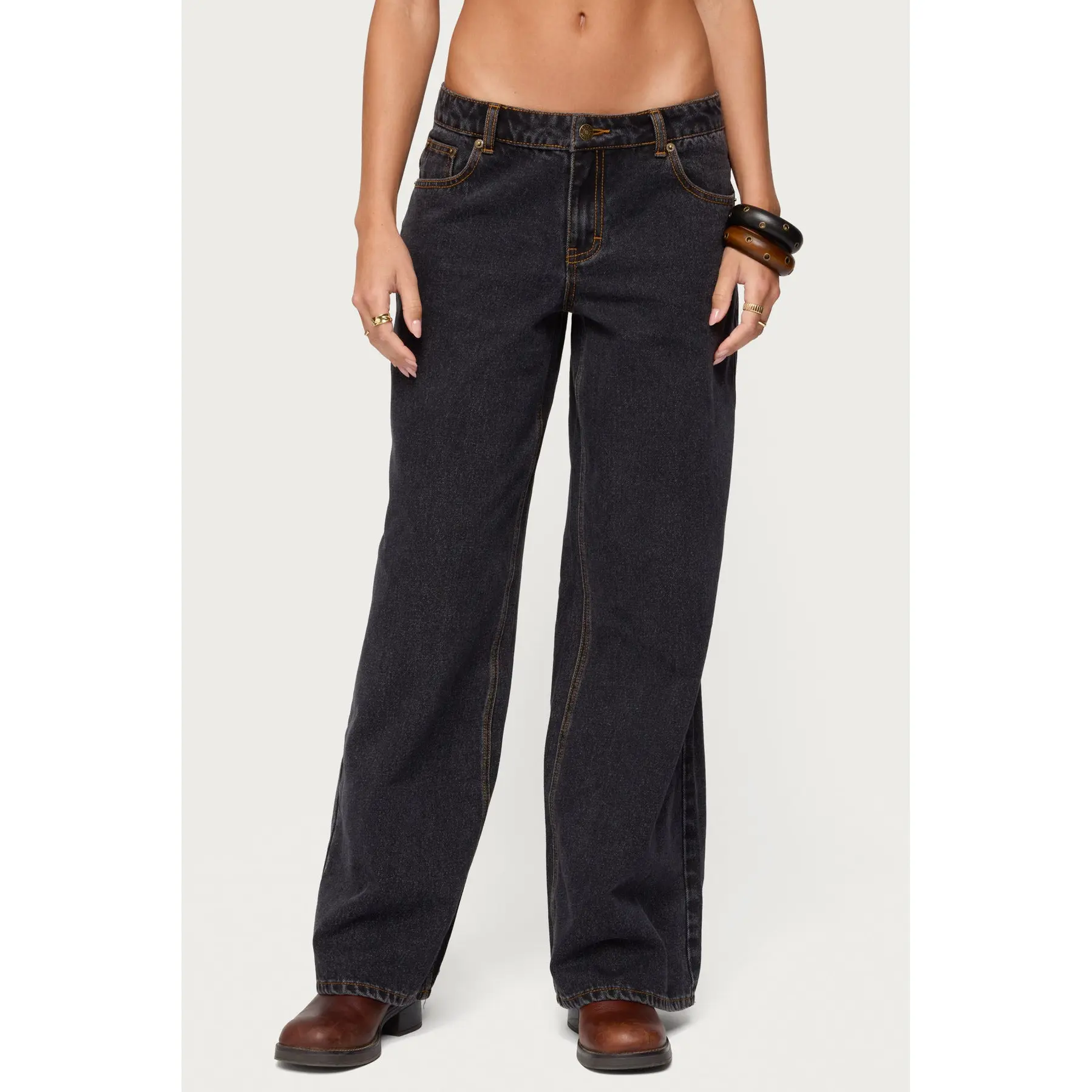 5. Contrast Stitch Low Rise Baggy Jeans