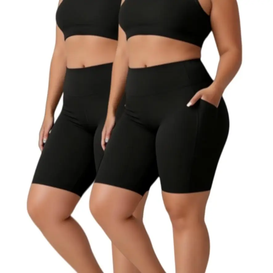 Set of 2 Women'S High-Waisted Shorts with Elastic Waistband And Two Pockets, Black Color Combinations, Suitable for Outdoor Sports, Casual Cycling, Fitness, Yoga, High-Elasticity Machine Washable Solid Color, Super Soft Opaque Athletic Underwear