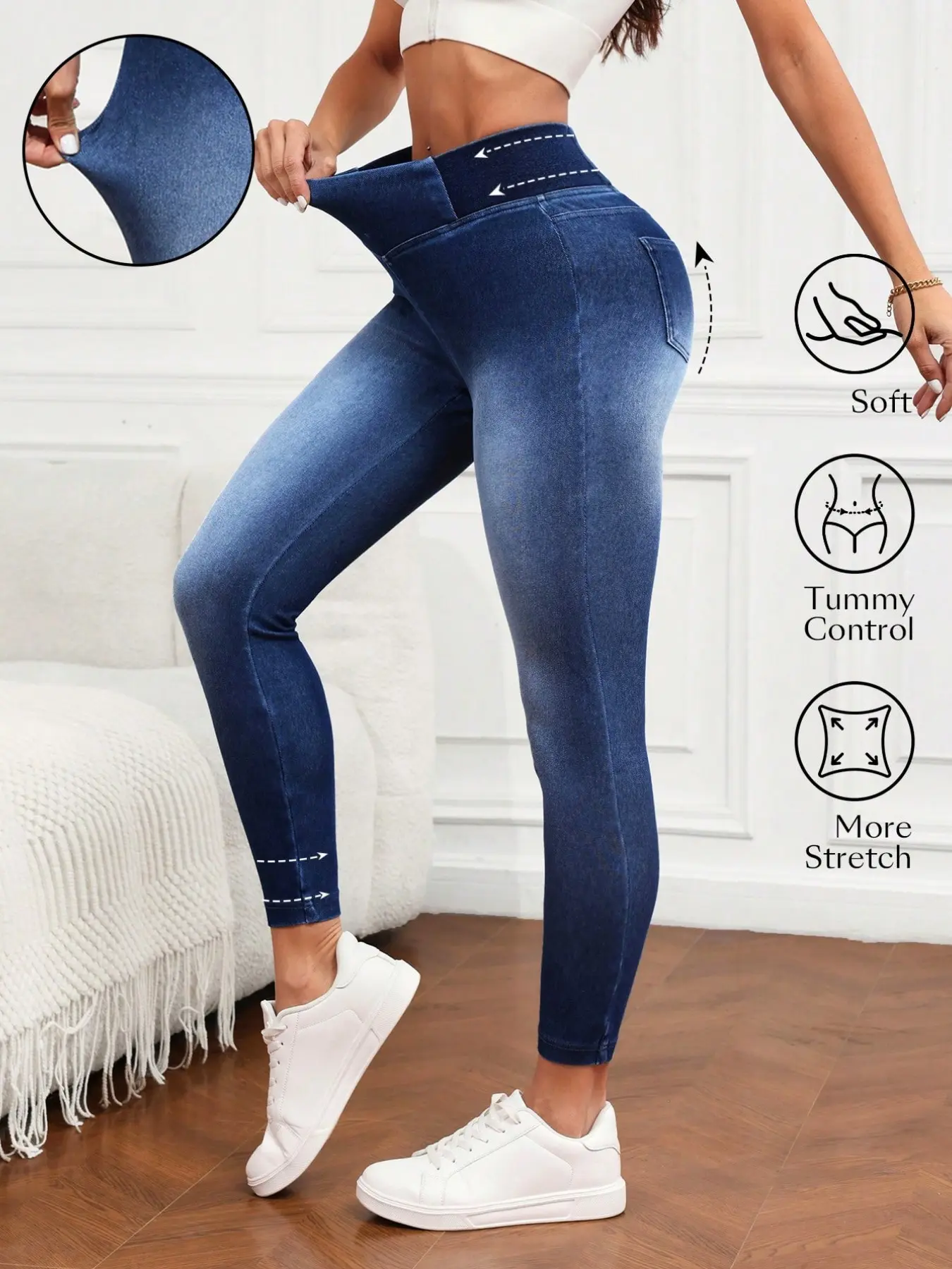【Tummy Control】: High-waisted jeans provide tummy control, ensuring a flattering fit throughout the day.