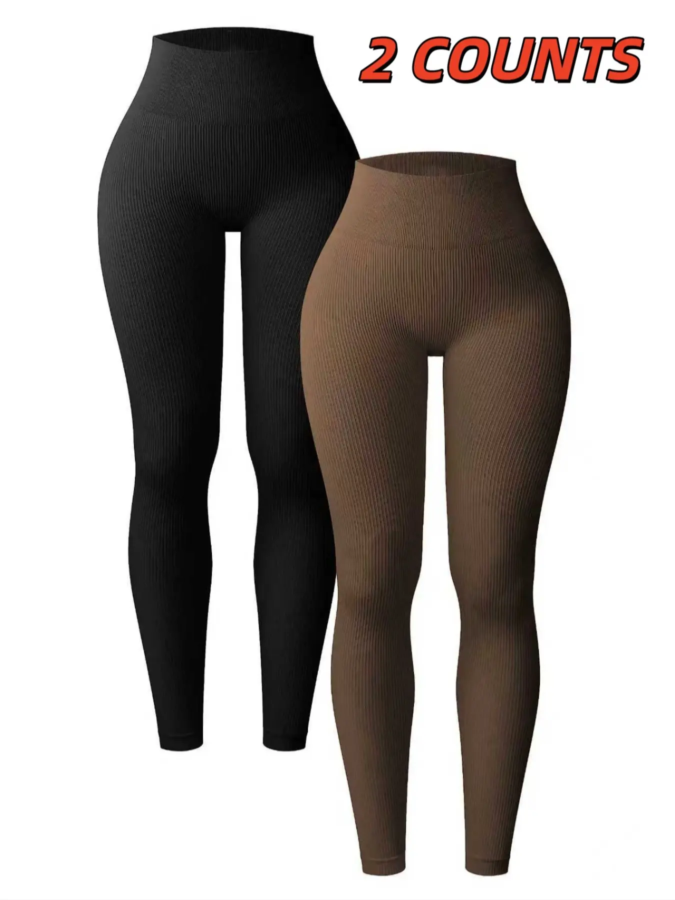 #2pcs Women's #highwaisted #sporty #yogapants , #skinny Yoga Bottoms, Elastic Knitted Design, Perfect Fit & Comfortable Gym Wear, All-Season Essential Fitness Gear
