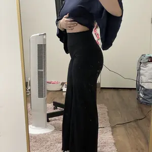 These pants are the best super stretchy and have a loose flow towards the bottom but fitted at the butt part! I’m 5’7 these pants are long I loveeee them