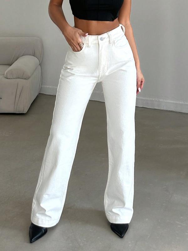 【Plain Pattern】: With a plain pattern, these jeans are easy to pair with various tops, offering a simple yet chic look.