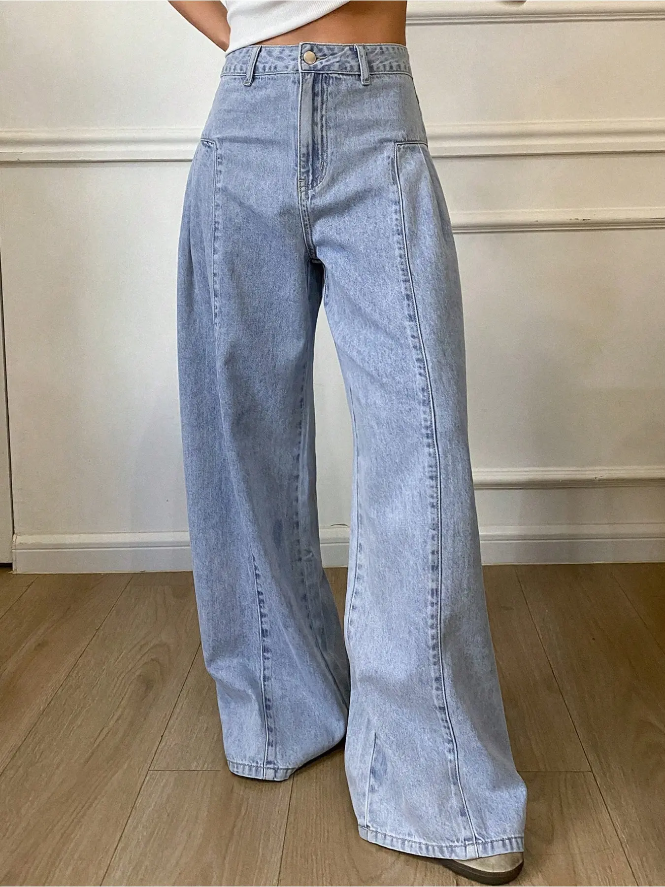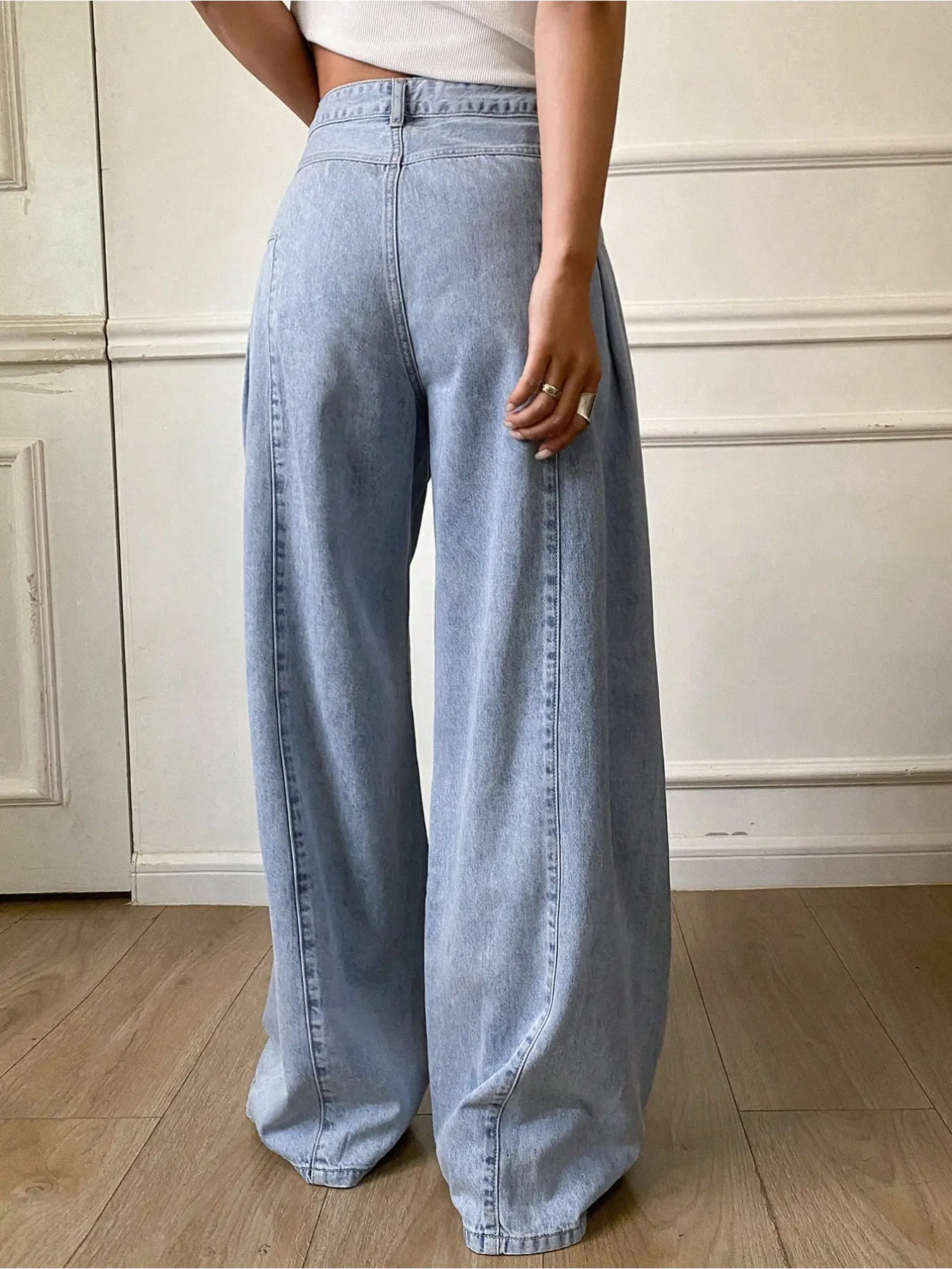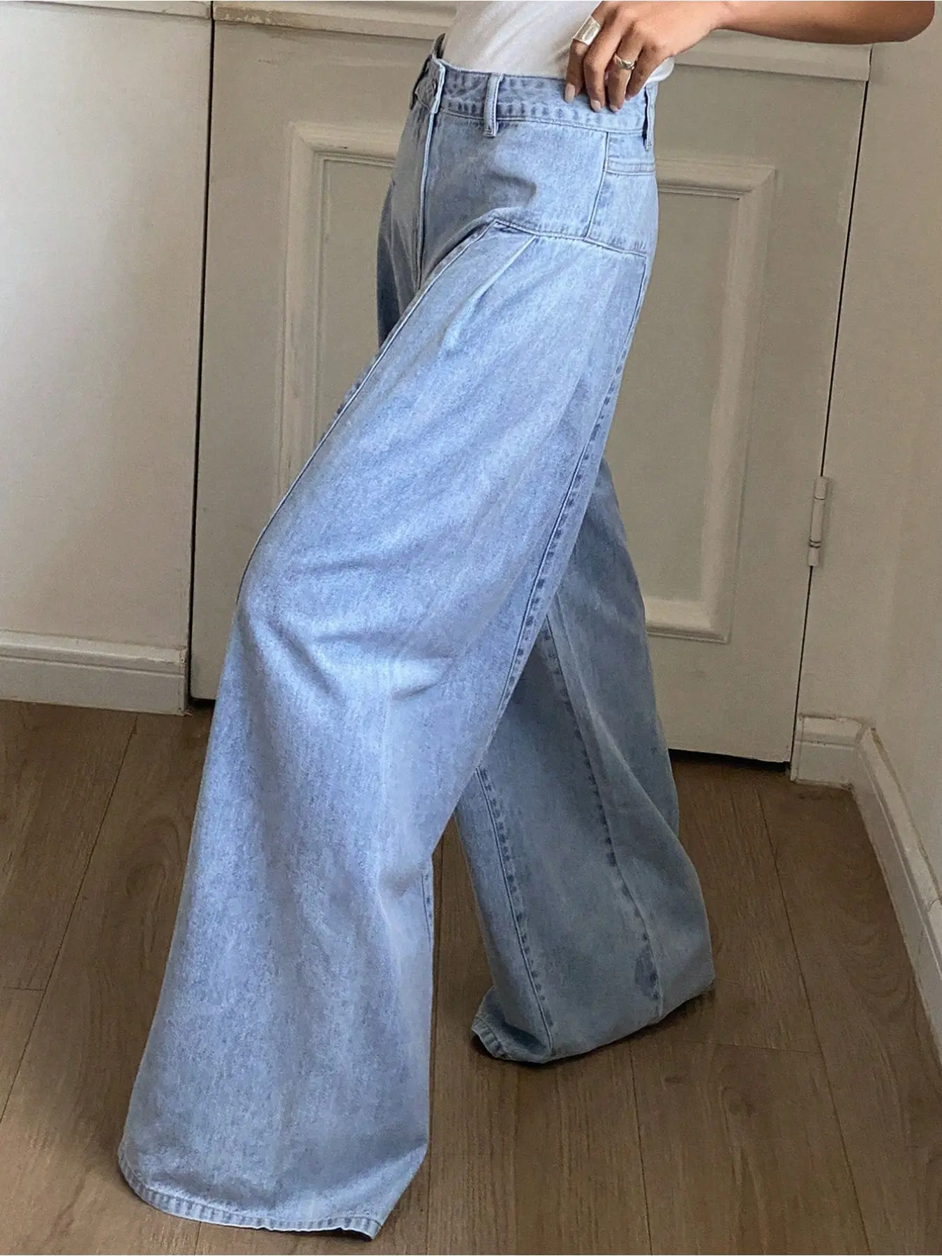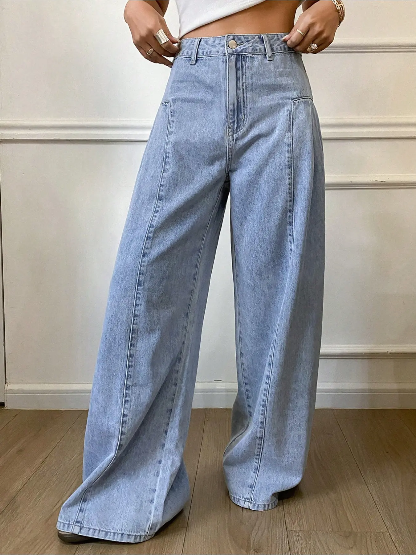 5. Women's Fashionable Elastic Comfortable Straight Leg Wide-Leg Woven Denim Jeans Pants, Plain Pattern, Fitted Style, All Seasons Wear, Womenswear