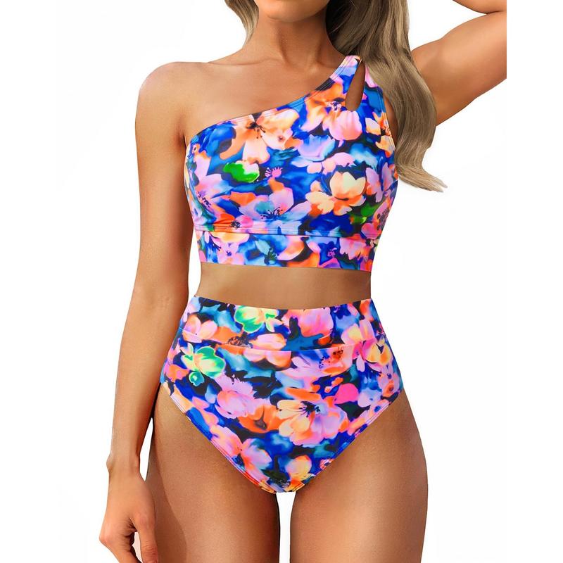 Yonique Two Piece High Waisted Swimsuits for Women - One Shoulder Bikini Tummy Control Bathing Suit 2025 Full Coverage