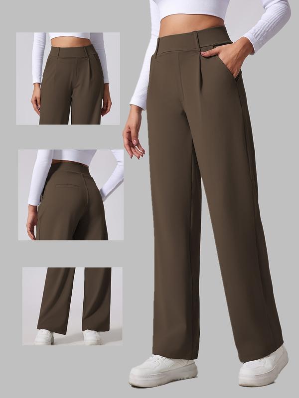 Women's Solid High Waist Trousers, Casual Comfy Trousers for Work Office Business, Ladies Bottoms for All Seasons, Casual Loose Pants#tiktok #tiktokshop #tiktokshopblackfriday #women #ootd