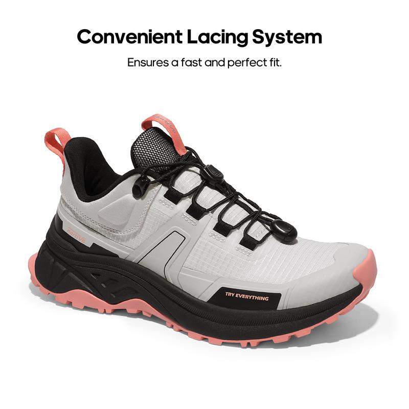 Look fabulous and feel confident with these women’s comfort hiking shoes. Designed with a convenient cord lacing system, these shoes offer a secure fit and support. They provide responsive cushioning and aggressive grip, ensuring you feel your best on each adventure. Explore the outdoors in style and comfort.
