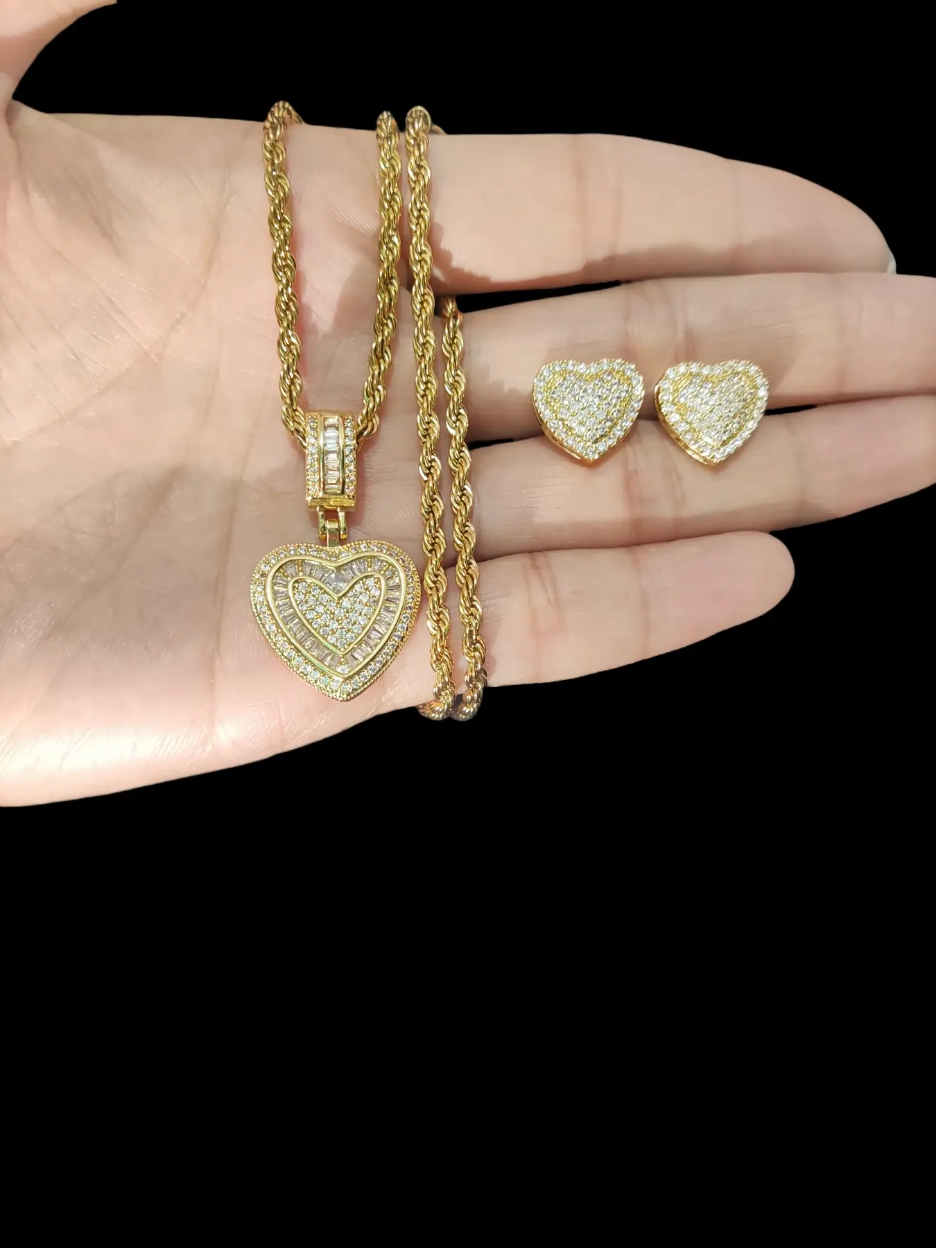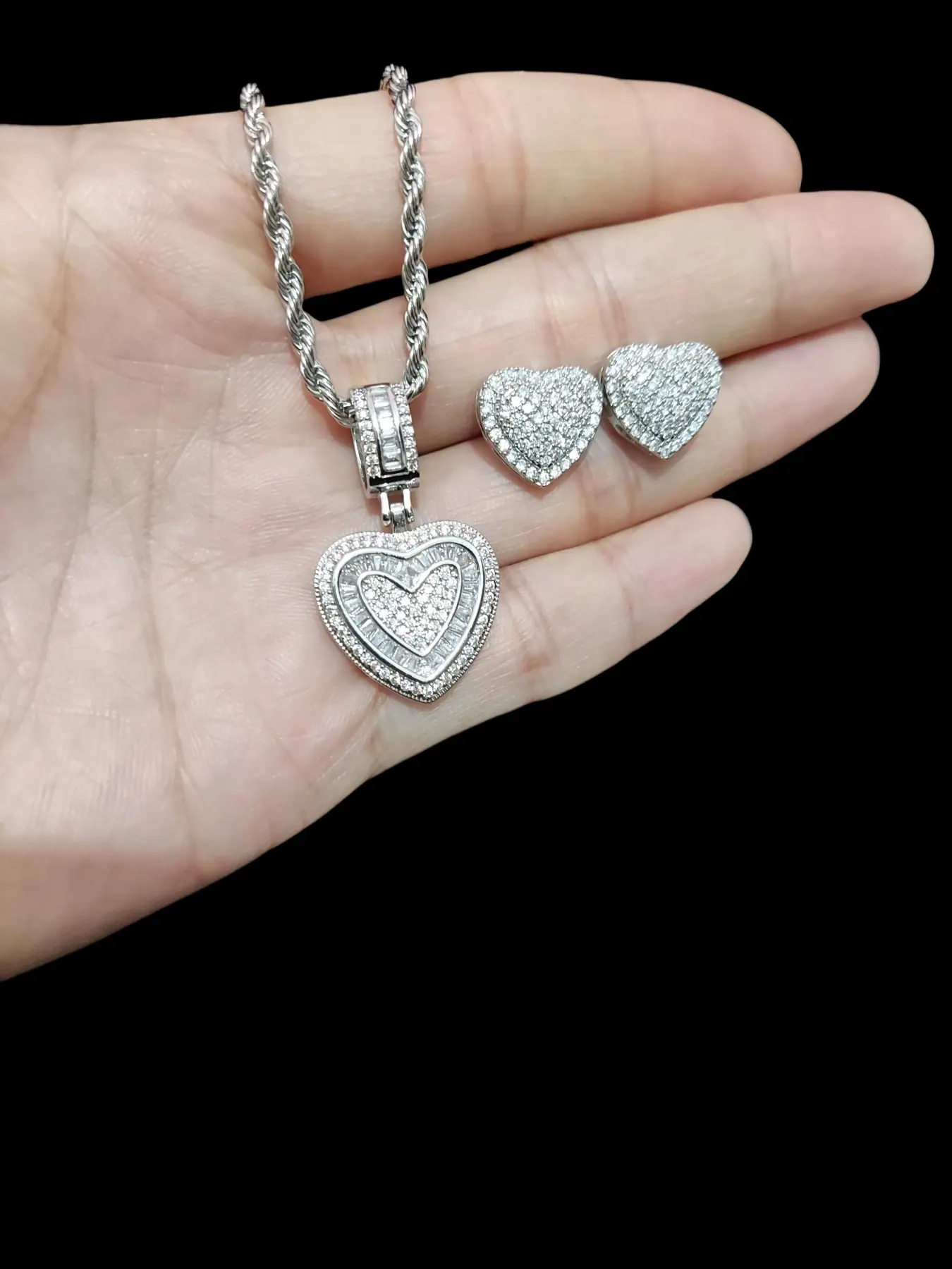 2Piece/Set Women Hiphop Love Heart Pendant Necklace With Love Heart Earring Fashion Vintage Hip Hop Necklace With Earring Is Perfect For Party Or Everyday Lovers' Gifts Fashionable Jewelry Set