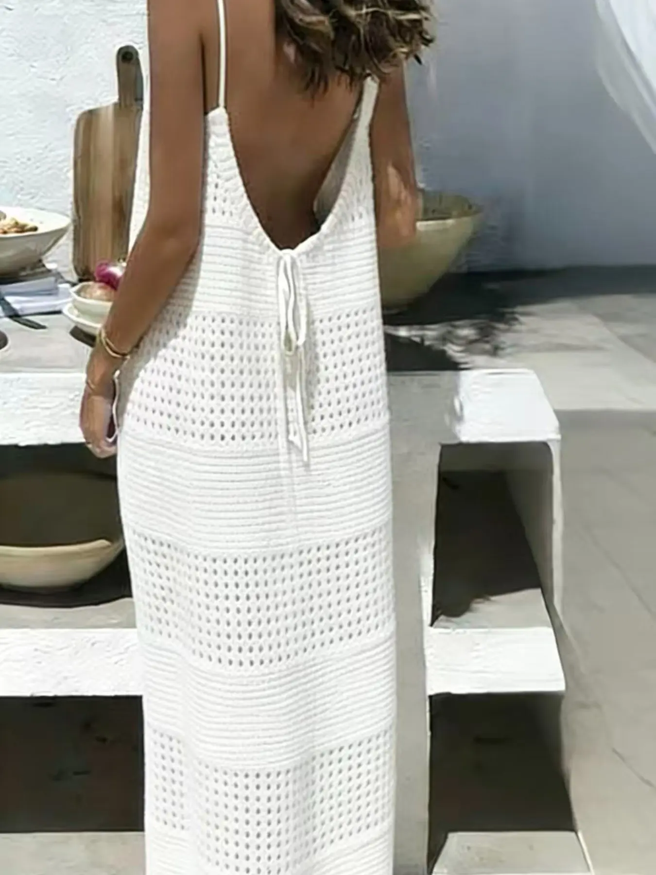 5. Women's Hollow Backless Vest Top, Lace-Up Design, Casual Knitted Long Dress Sweater, Pure Color, Spring, Fashionable and Comfortable