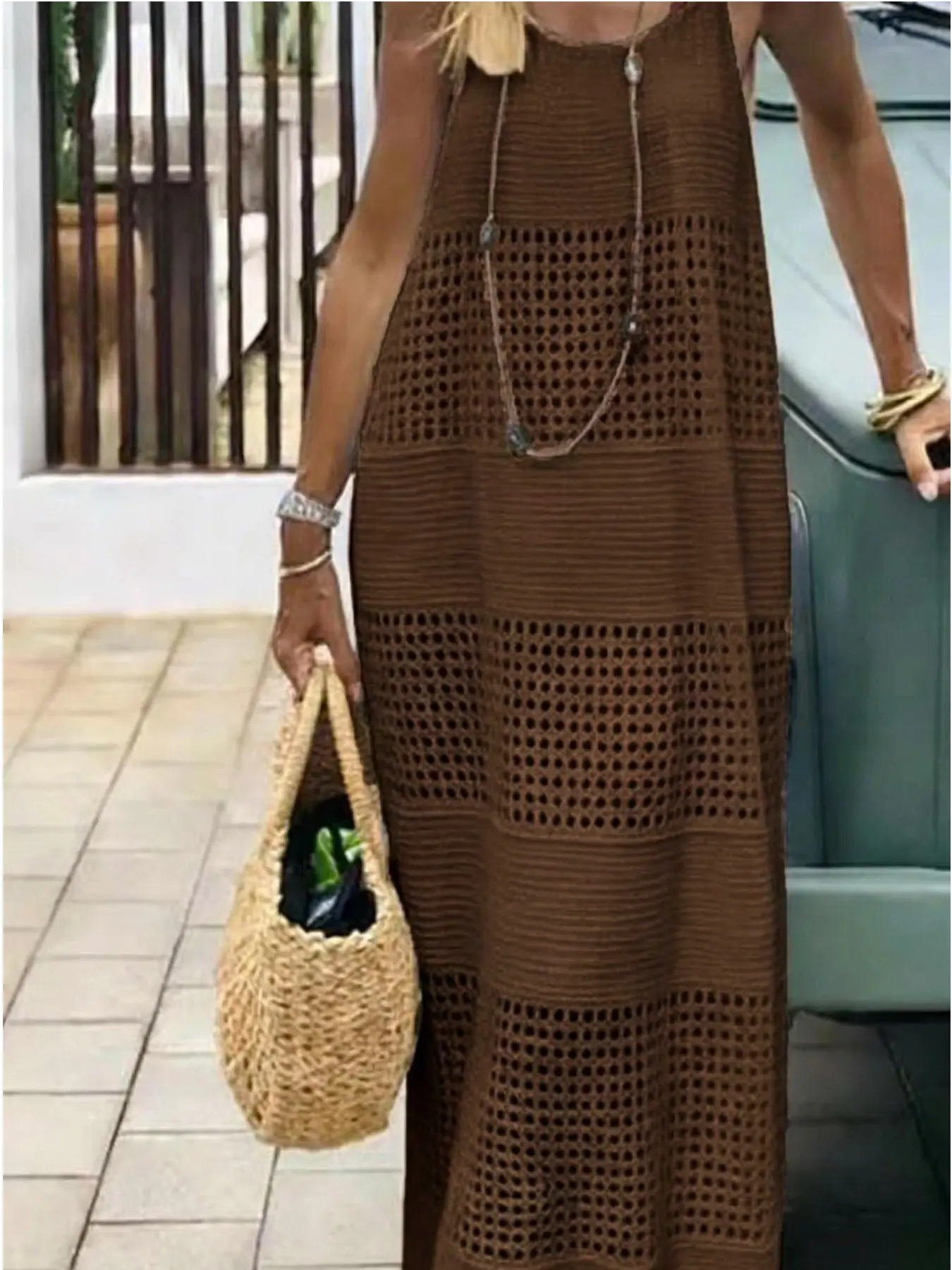 Women's Hollow Backless Vest Top, Lace-Up Design, Casual Knitted Long Dress Sweater, Pure Color, Fashionable and Comfortable #plussizebacklessdress #womensclothingtiktokshop #highwaisttummycontrolpantiesforwomen #backlessactivewear #backlessshapewear #เสื้อผ้าผู้หญิง #weightedvestforwomen #womenstanktops #openbackdresses #outfitforwomen
