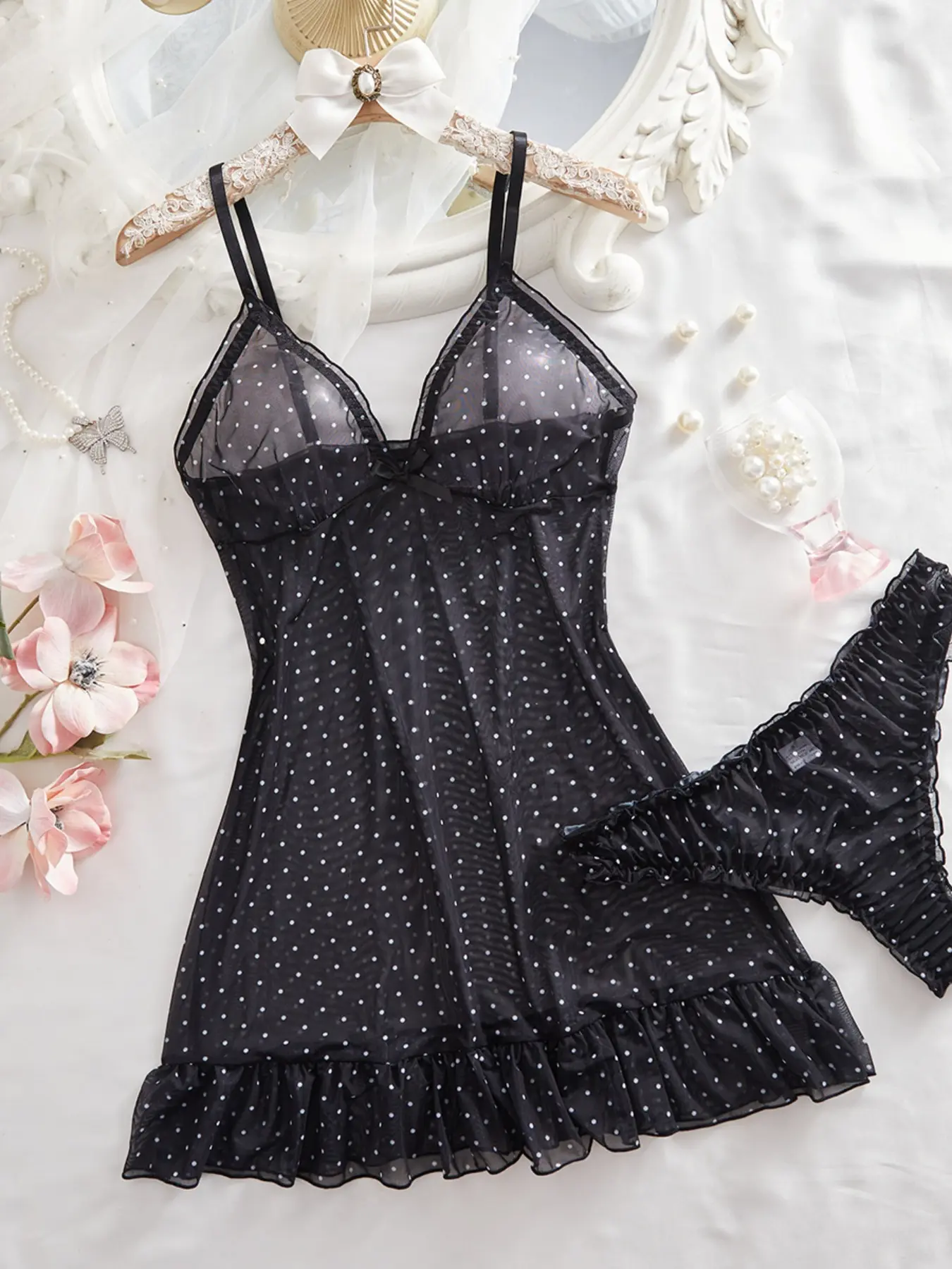 【Polka Dot Pattern】: Adorned with a playful polka dot pattern, adding a touch of fun and personality to nighttime attire.