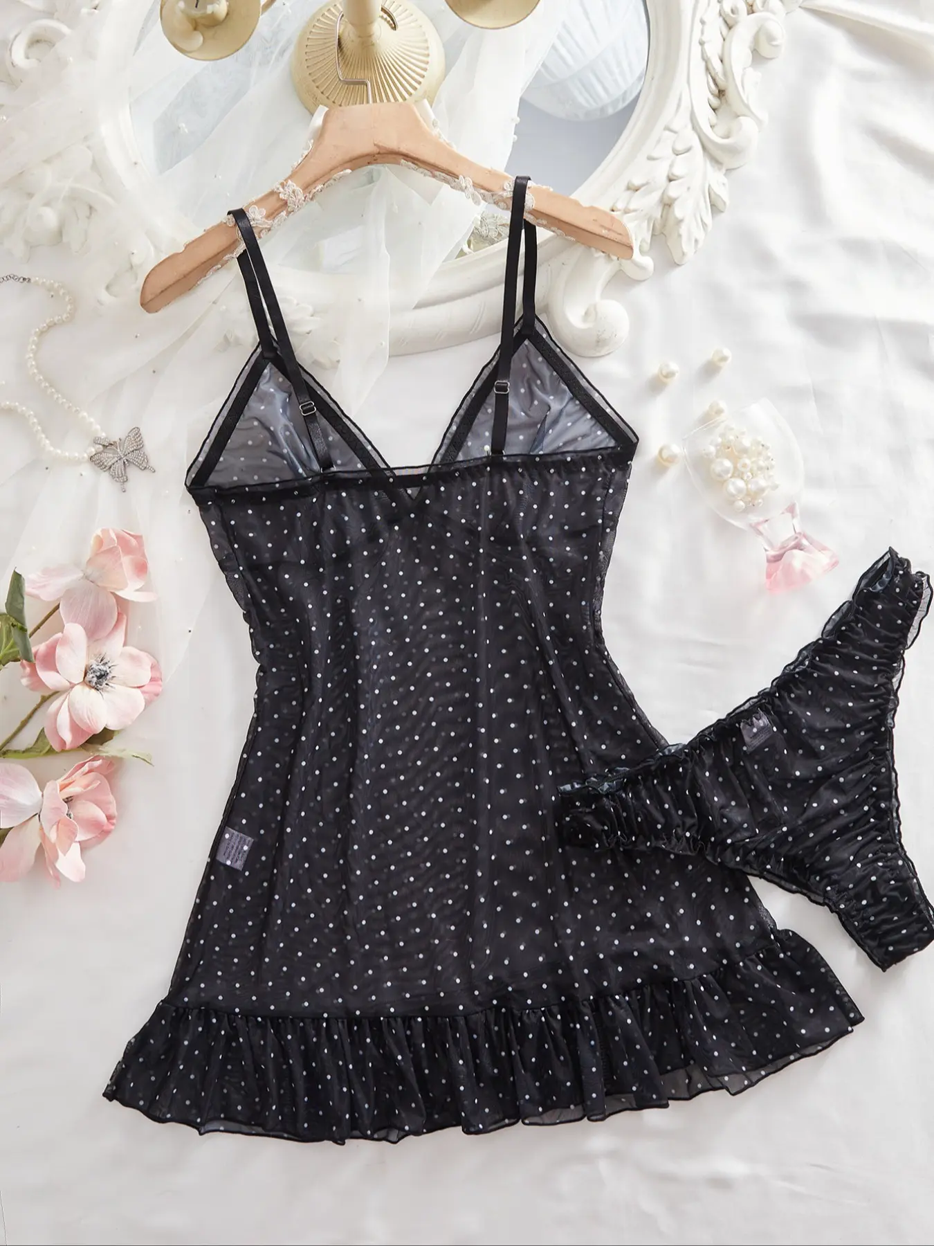 【Chic Hemline】: The ruffled hem design offers a charming visual detail, enhancing the overall appearance of the sleepwear.