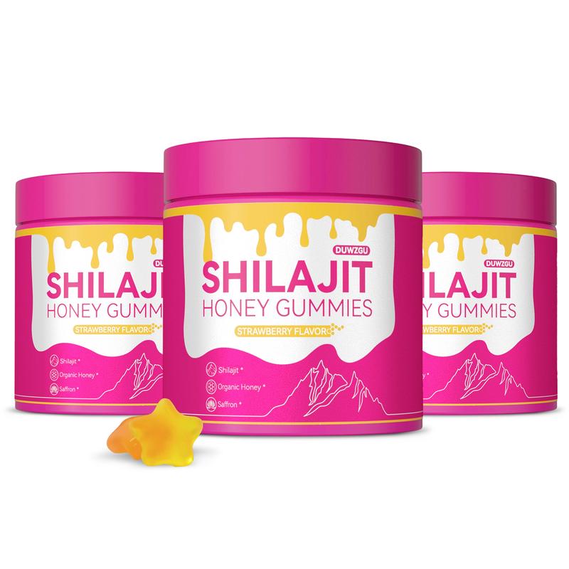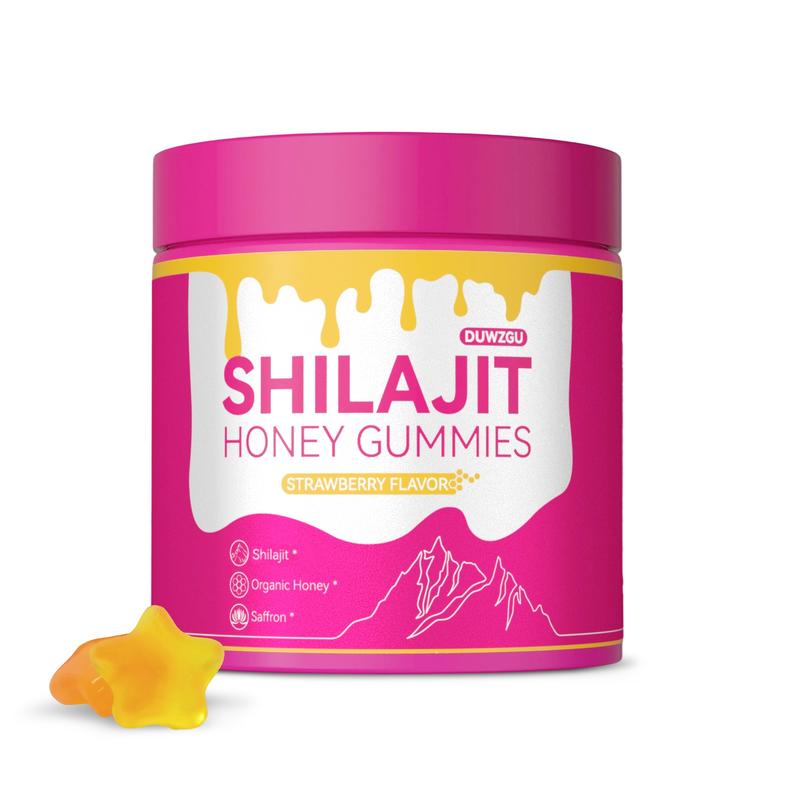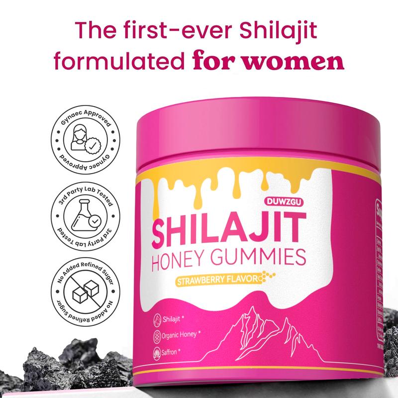 Women's honey gummies, a complex mineral supplement, boost energy, and a health dietary supplement containing shilajit, asparagus, and saffron, help balance hormones.