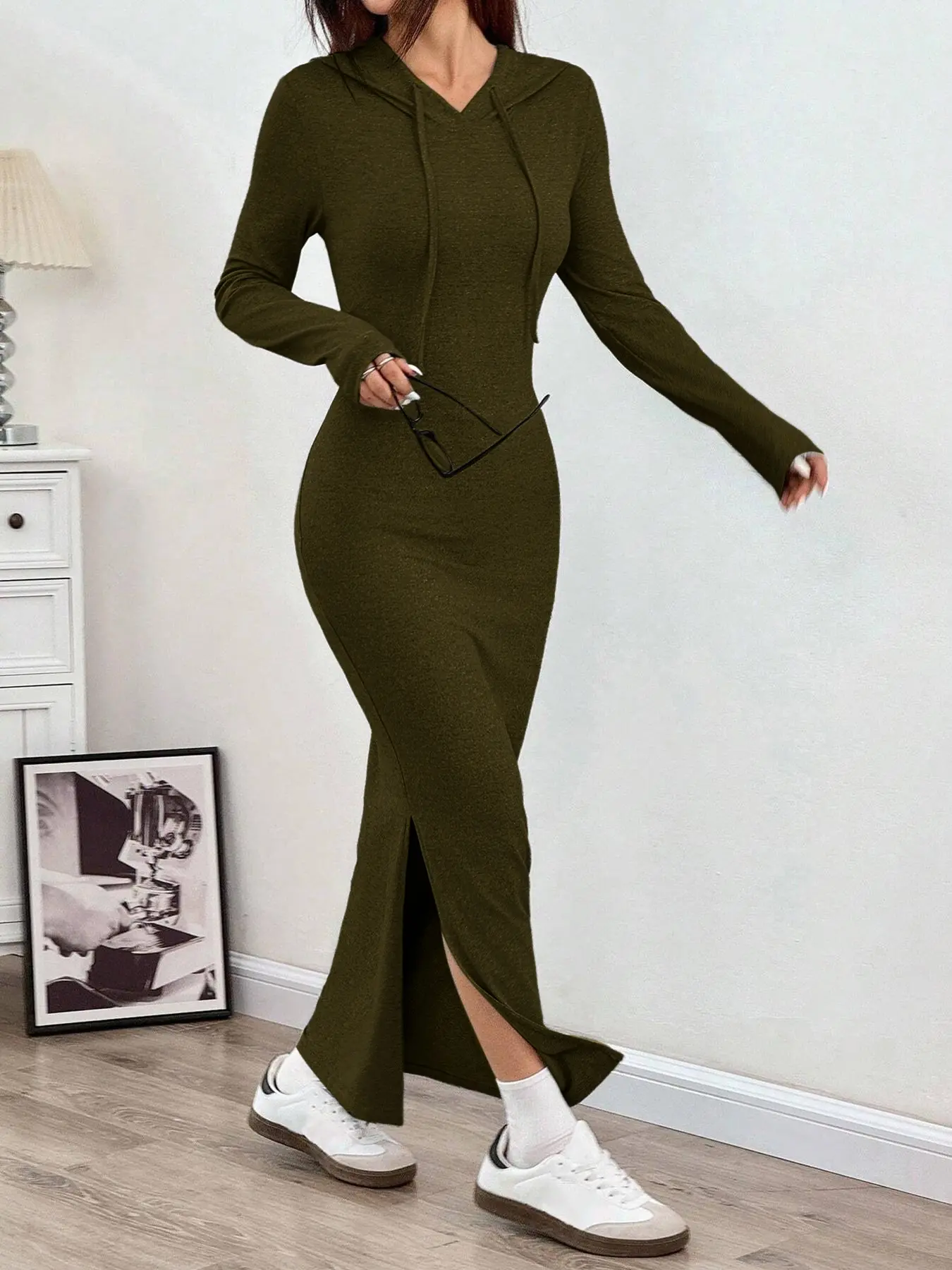 So I’m heavy chested, anything I buy I have to get at XL to fit in shirt form. Yall know I love hoodies, so I just had to get this dress. Let me tell you how comfortable it is. This thang fits me like a glove, curves to a T! With the hoodie on it, that’s a plus for sure. Get you one, throw it on & go baby! Slits at the bottom…….👌🏽👌🏽👌🏽👌🏽👌🏽