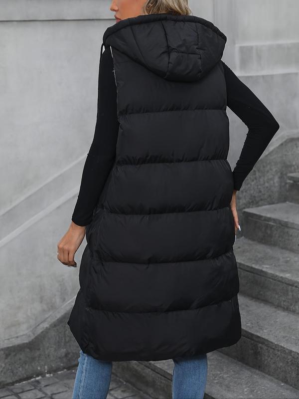 Women's Solid Pocket Zip Up Drawstring Hooded Vest Winter Coat, Casual Fashionable Sleeveless Warm Coat for Daily Outdoor Wear, Women Clothing for Fall & Winter