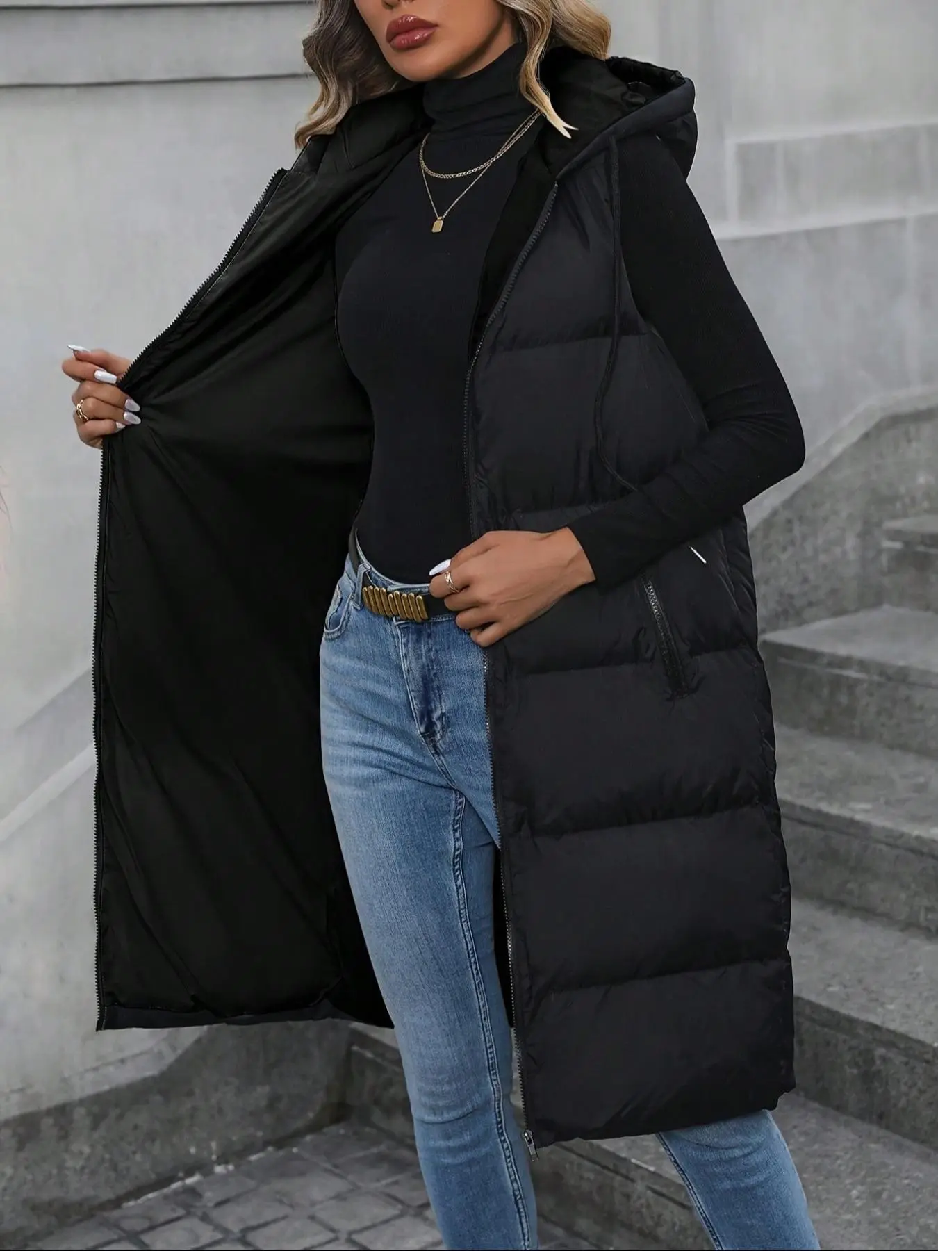 #vest #hoodedvest #warmvest #longvest #puffervest