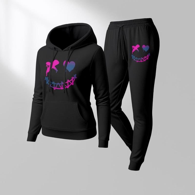 Printed Hoodie & Drawstring Sweatpants Set