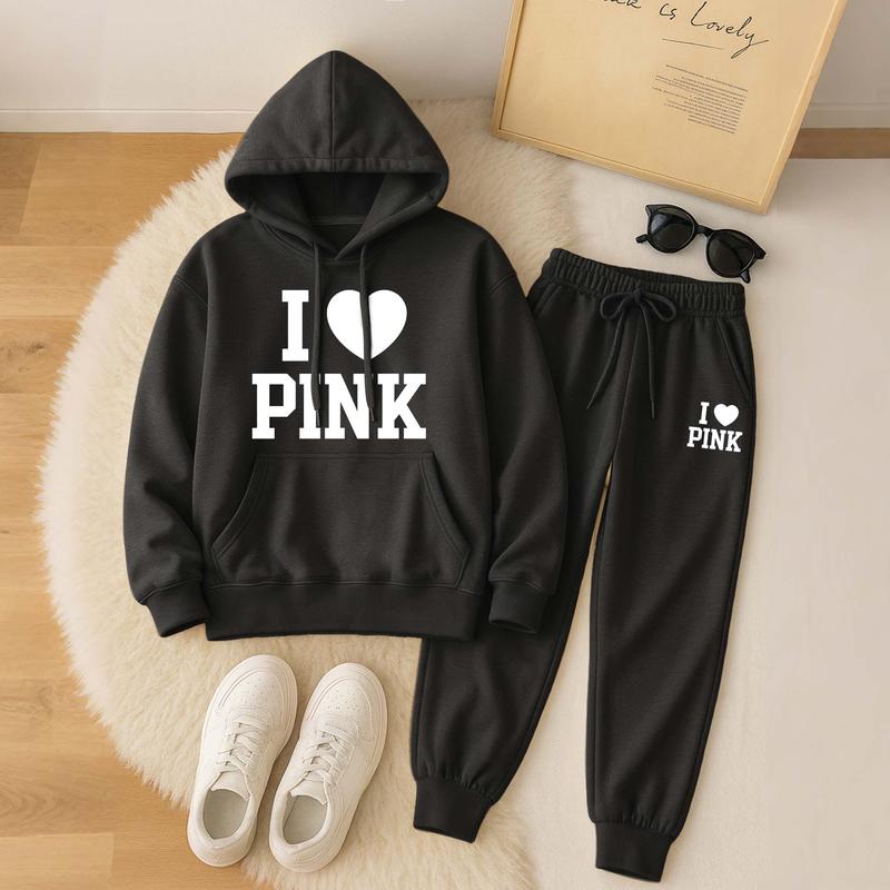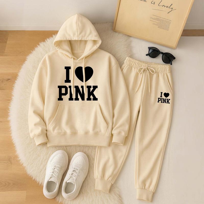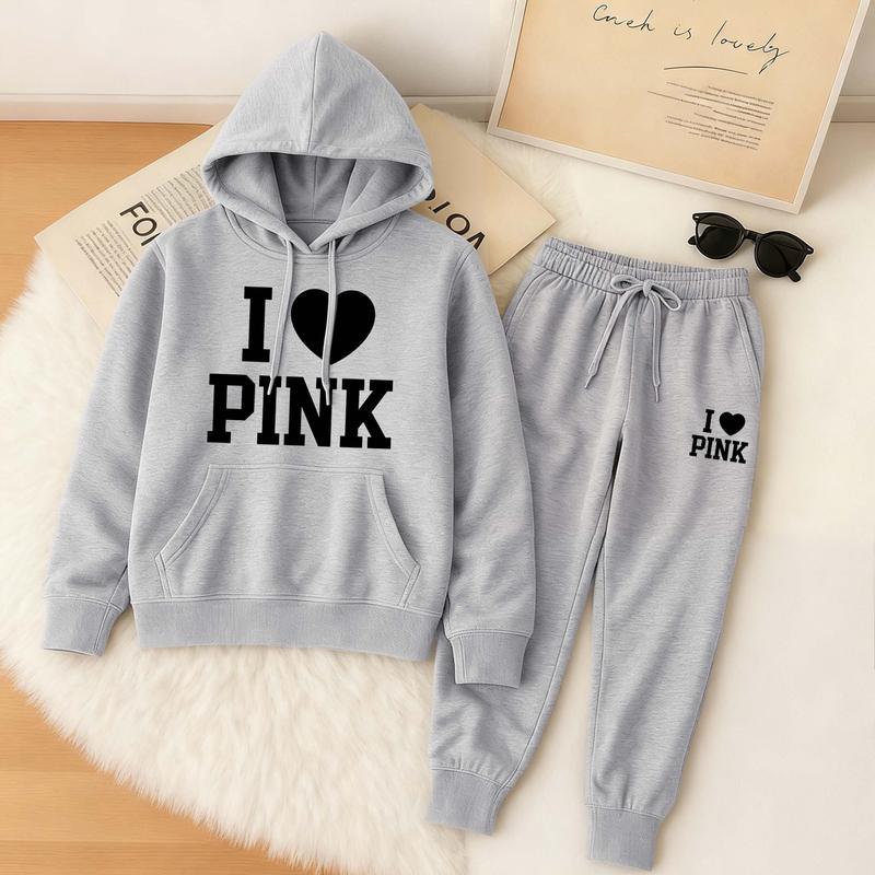 Women's Printed Hoodie & Drawstring Sweatpants Set