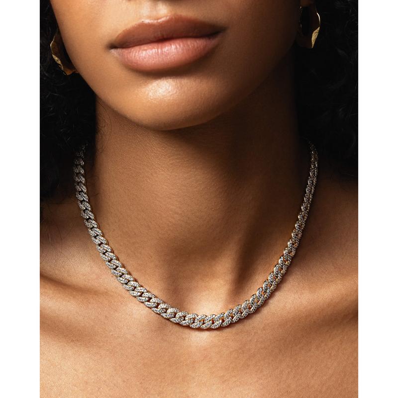 Micro Diamond Prong Cuban Necklace in White Gold - 6mm
