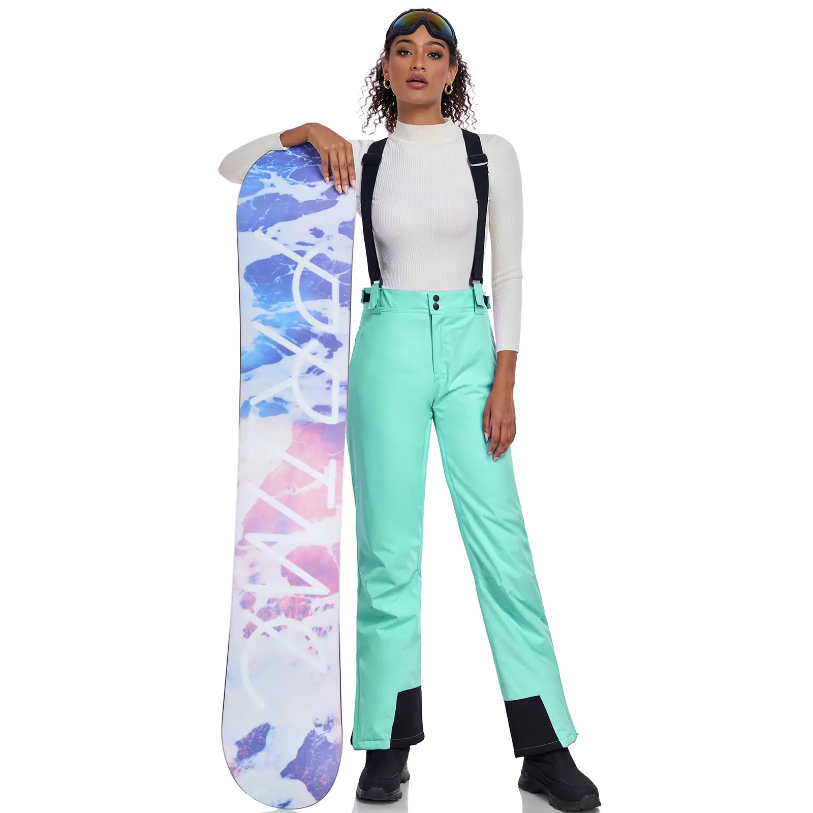 5. YEEFINE Women's Insulated Snow Pants Winter Warm Ski Pant Outdoor Waterproof Snowboard Bibs with Detachable Suspender