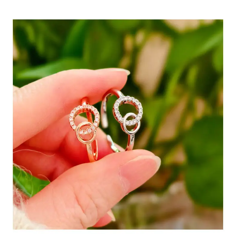 ·These rings feature an interlocking double circle design, perfect for minimalist fashion. 🌟