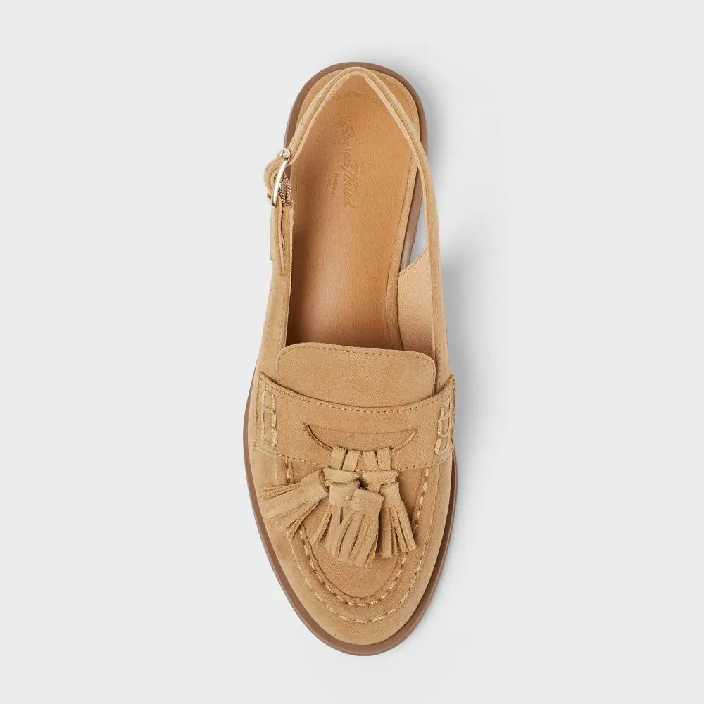 I wear an 8.5 and it ran alittle big for me. It’s comfortable and adorable style is perfect for the office or casual wear with a skirt or pants. The back straps are stretch and don’t hurt the back of your leg.