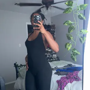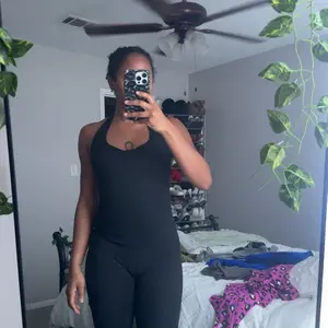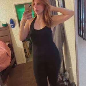 this is a very soft material. It is a bit see-through so it’s not for the gym. Luckily, I didn’t get it for the gym. The top part of the jumpsuit is pretty big so if you have a small smaller chest is gonna look all scrunchie at the top, but it’s not too bad