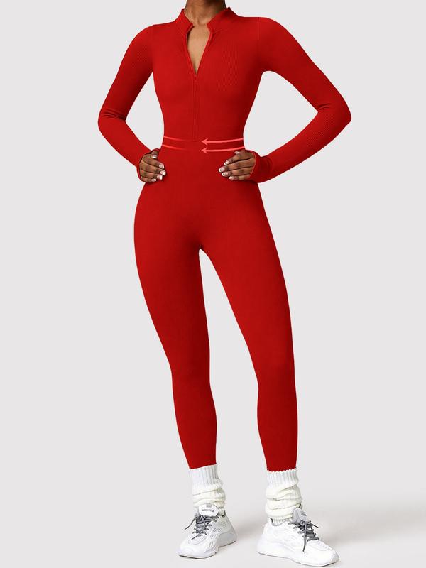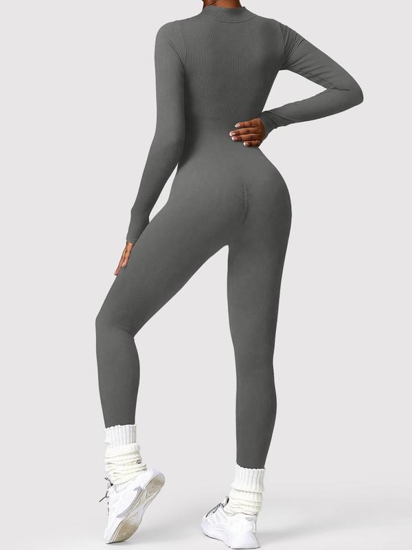 Women's Solid Color Zipper Long Sleeve Jumpsuit, Casual Sporty Comfortable One-Piece, Perfect for Yoga Gym Exercise, All Seasons Women's Sports Wear, Workout Jumpsuit