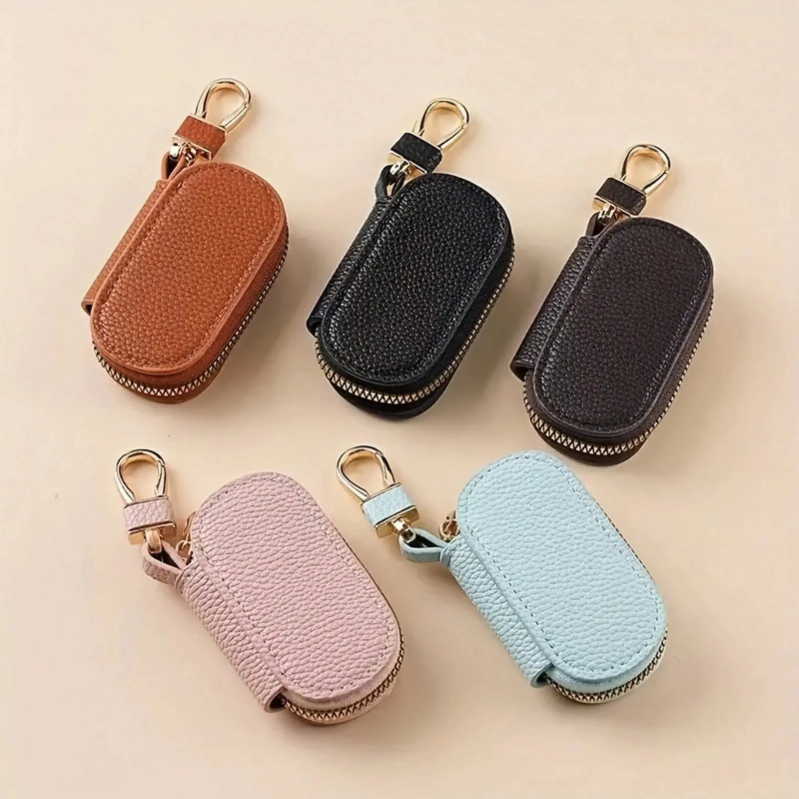 Women's Lychee Pattern Key Bag, Solid Color Design, Universal Fit, Large Capacity Storage, Ideal for Daily Use & Organizing Keys