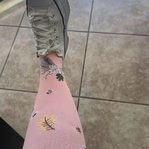 These compression socks are both stylish and supportive! The floral designs are so cute, and they stay up all day without sliding. Perfect amount of compression—comfortable for long wear. Great quality for the price, and they wash well too.