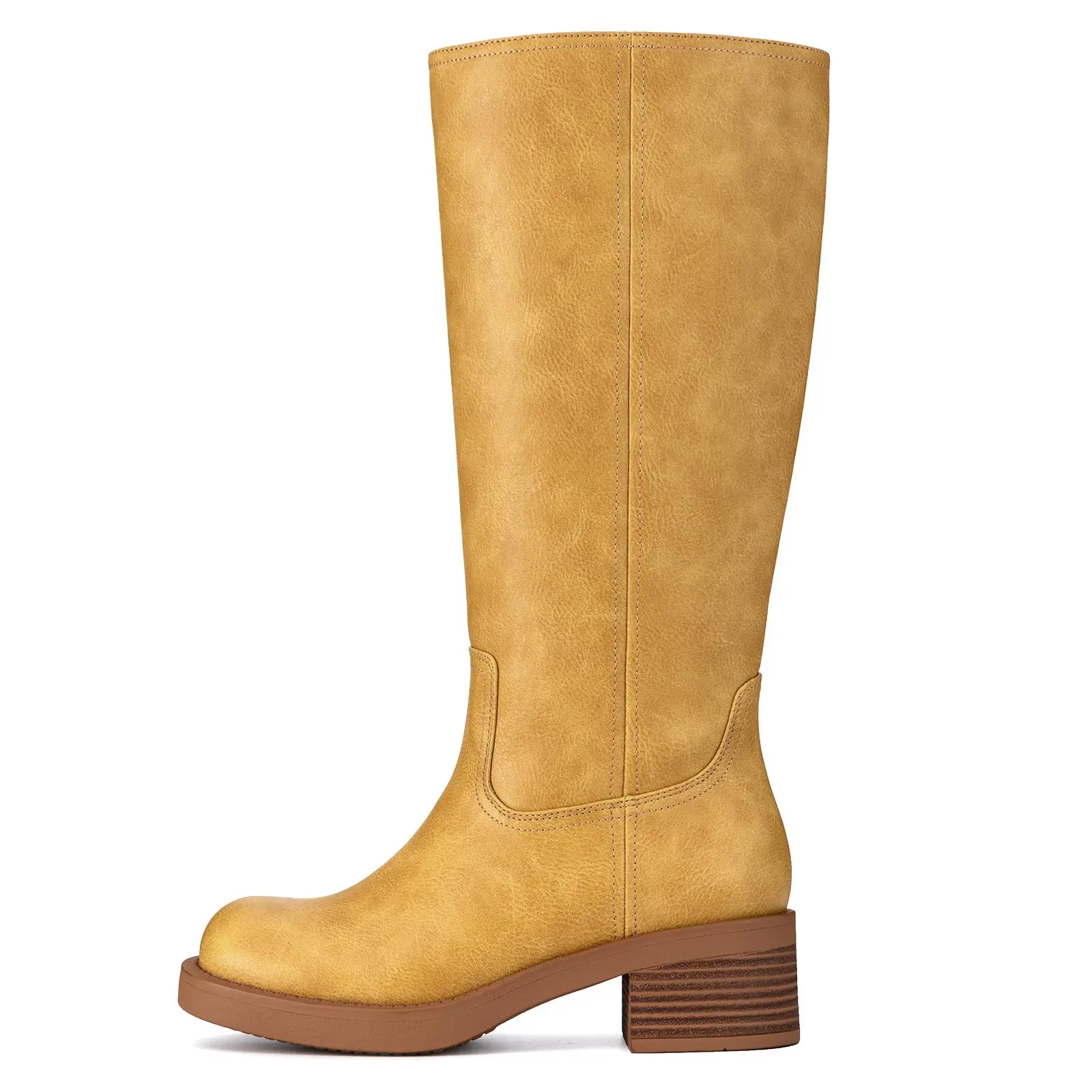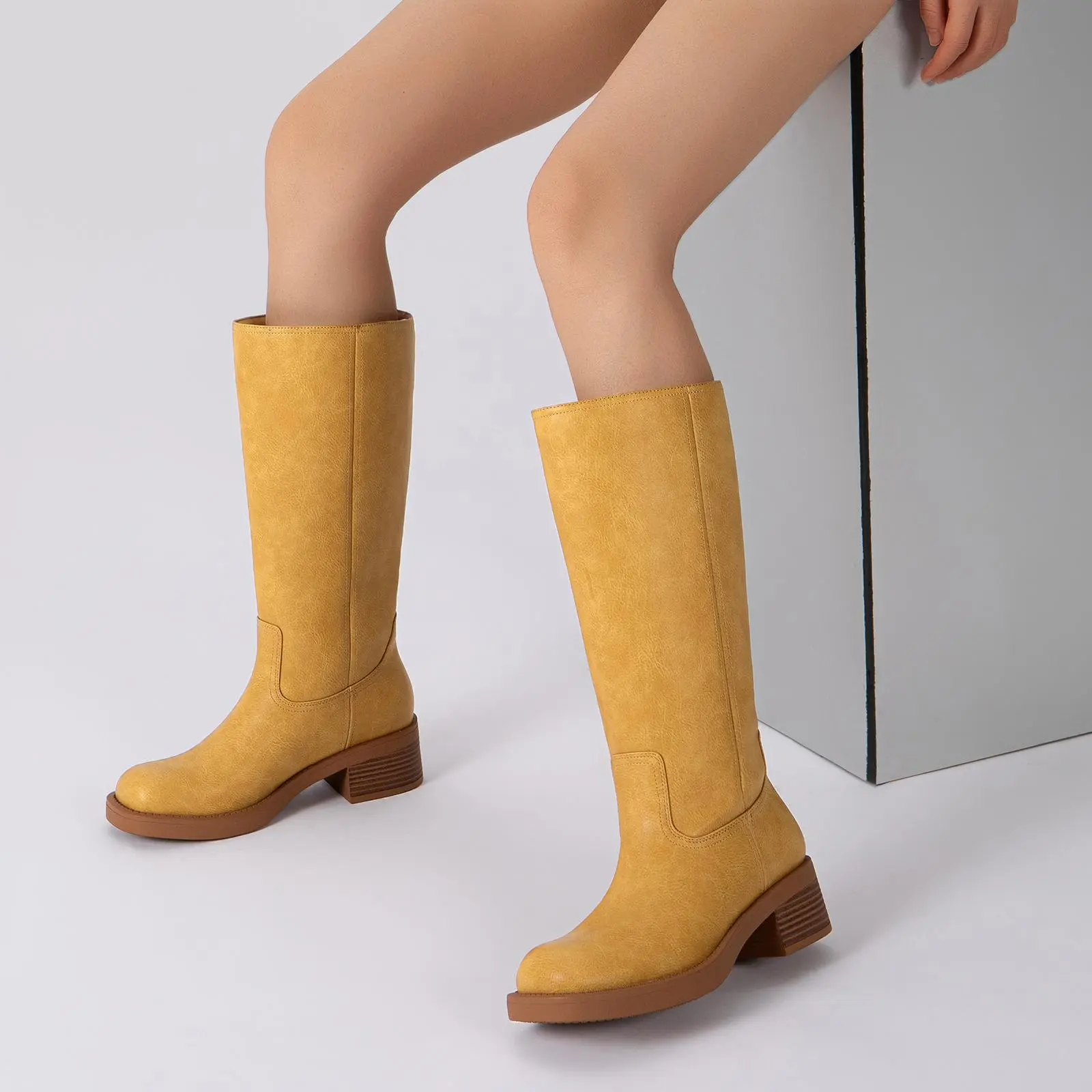 ·Slip-on Style: Tall boots for women feature a pull-on design for easy on and off. With a 1.93-inch low heel and chunky sole, it provides better stability and comfort for long-term wear