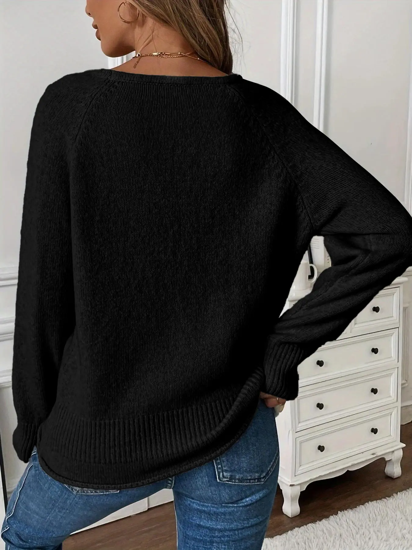 Women's Knitted Pullover Sweater, Casual Long Sleeve Drop Shoulder Design, Soft & Cozy Winter Wear, Perfect for Daily Use, Knitwear #womensclothingtiktokshop #womenssweatshirtset #plussizesweaters #cozyholidayootd #womenssweats #sweaterforwork #designersweaters #vnecksweater #woolblendsweater #wintersweater