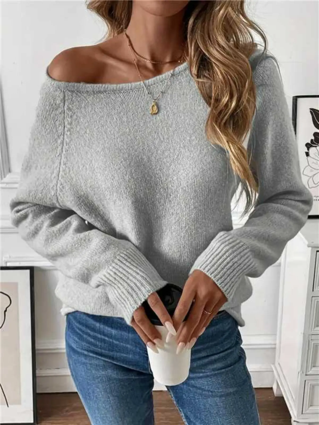 Women's Knitted Pullover Sweater, Casual Long Sleeve Drop Shoulder Design, Soft & Cozy Winter Wear, Perfect for Daily Use, Knitwear #womensclothingtiktokshop #plussizesweaters #womenssweats #cozysweatshirt #cozyholidayootd #widenecksweater #sweaterforwork #designersweaters #chunkyknitcardigan #womenscardigan