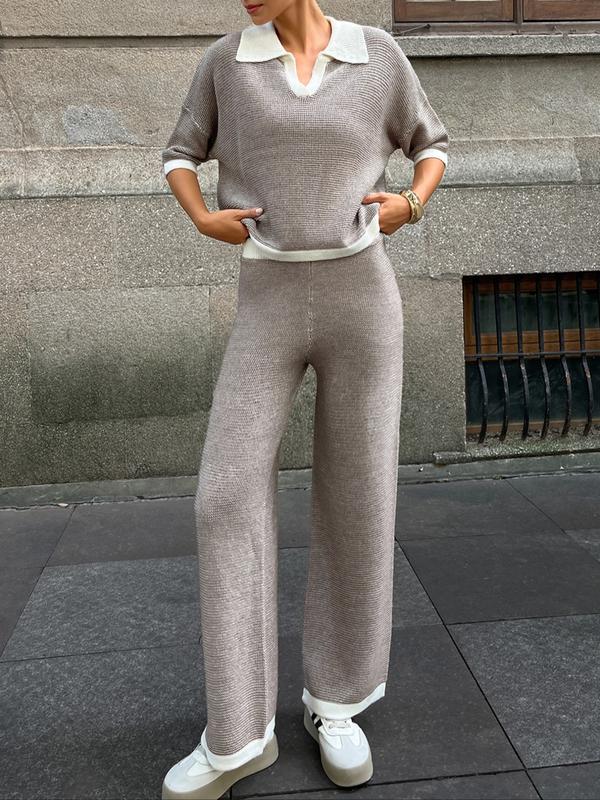 Women's Knit Outfit Set Autumn Winter Casual Elegant Loose Fashion Lapel Pullover Sweater Long Pants Two-Piece